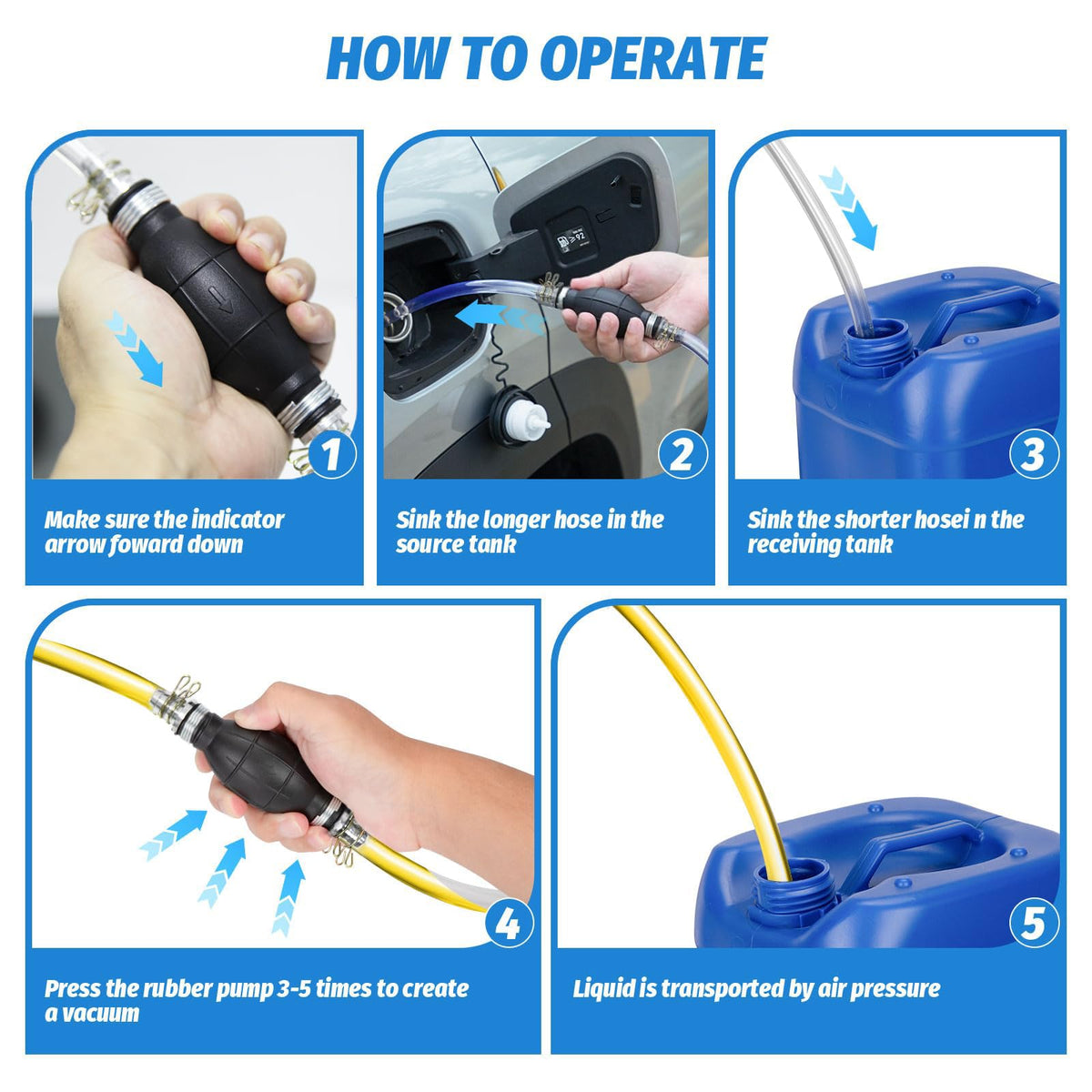 Effortlessly transfer gasoline, oil, diesel, and water with our high-flow gasoline siphon hose pump. Designed for maximum efficiency, this portable hand fuel transfer pump weighs only 290g, making it easy to carry and use. The upgraded 15mm hoses and built-in one-way stop valve ensure smooth and safe operation. Ideal for emergency gas transfers and fish tank water changes, this pump is a must-have tool for any household or workshop. Experience hassle-free fluid transfer with our premium-quality siphon pump.