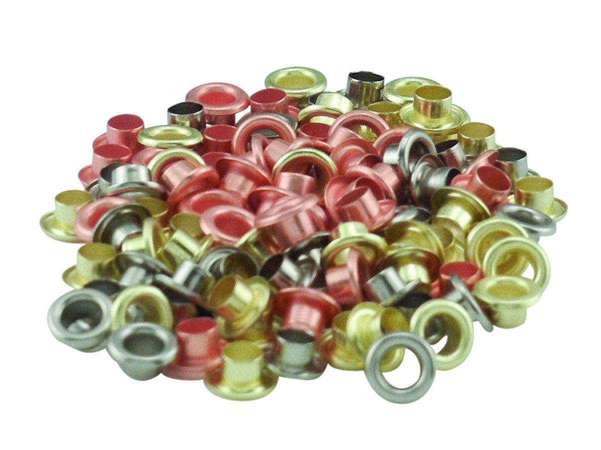Q: What finishes do the included eyelets come in?A: The package includes eyelets in three finishes: copper, silver, and gold, allowing you to choose the best match for your projects.