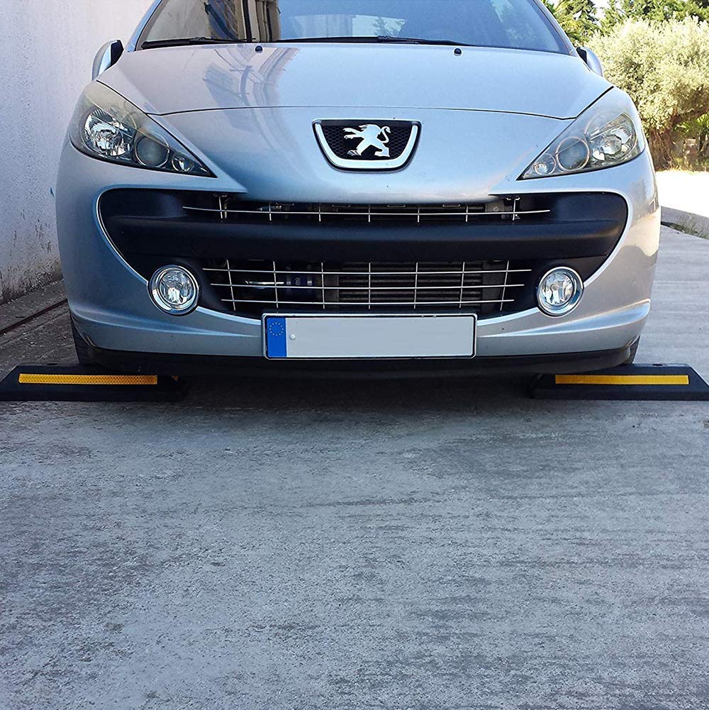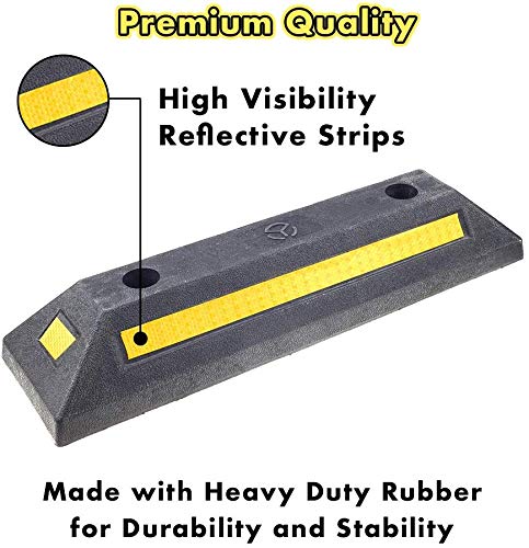 Genubi Industry Rubber Curb, Black Heavy Duty Parking Blocks Parking Target With Yellow Refective Stripes, Wheel Stop Stoppers For Car, Truck, Rv, Trailer, And Garage, 2 Pack Professional Grade