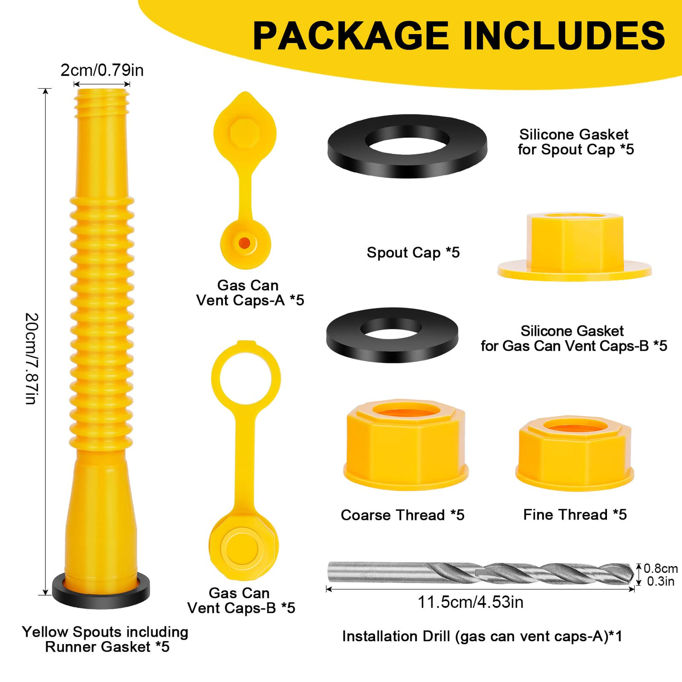 Godboy Gas Can Spout Replacement, Gas Can Nozzle, (5 Kit-Yellow) Flexible Pour Nozzle Suitable For Most 1/2/5/10 Gal Oil Cans, Fuel Can Spout Replacement