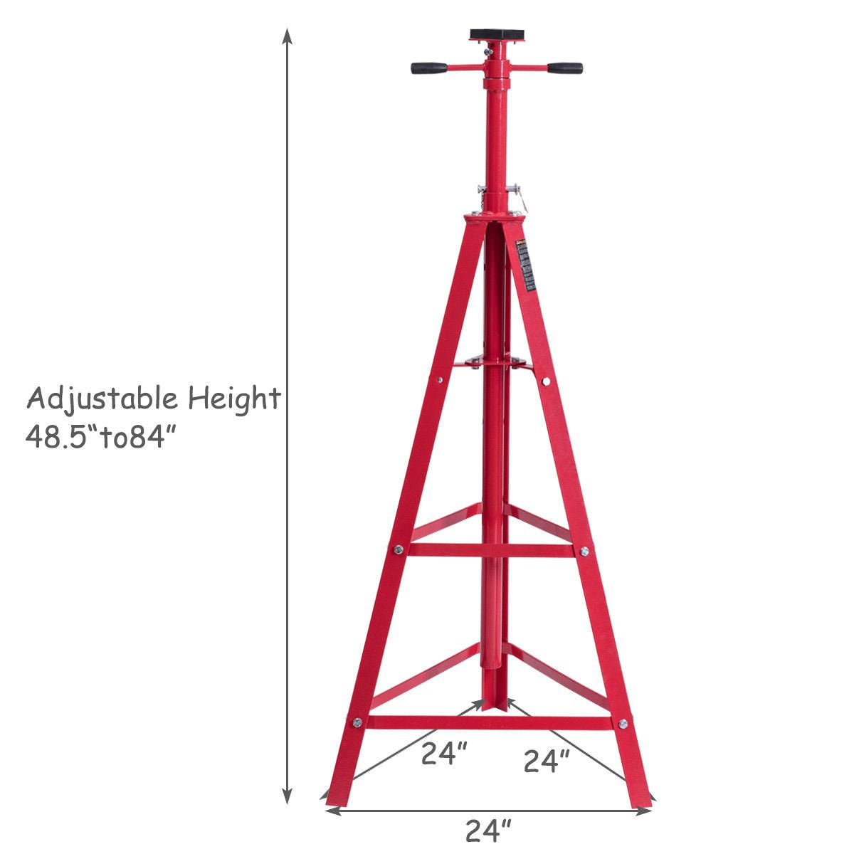 Descriptionthis Is Our Welded Steel Tripod Stand Jack, It Has 2 Ton Bearing Capacity, Which Is Ideal For Supporting Exhaust Systems, Shock Absorbers And Other Vehicle Components During Under Vehicle Repair.Featureheavy Duty Welded Steel Construction2 Ton Bearing Capacityadjustable Height To Meet Different Requiresdetachable Rubber Padsafe And Stablespecificationmaterial: No.235 Steelsize Of Tripod Stand: 24'' 24'' 24''Adjustable Height From 49'' To 84''Item Weight: 34.2 Lbsassembly Needednote: During Assembling, The Last Two Lines Are No Nuts Needed.Package Include:1 Tripod Stand Jack1 Hardware Set1 Manual