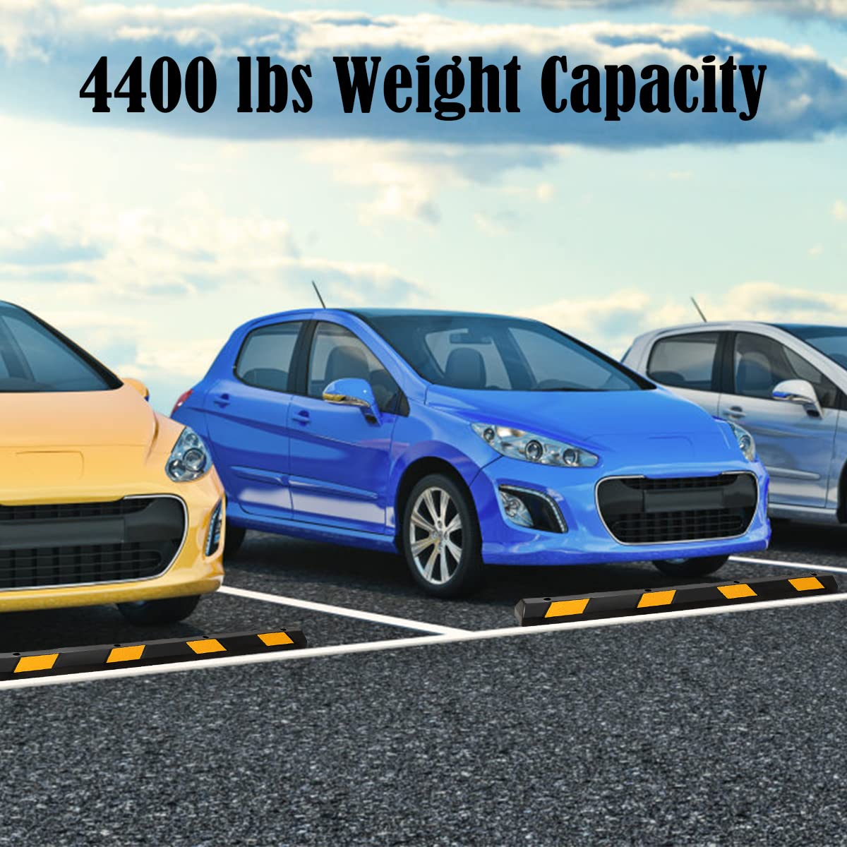 Q: What safety features does the Goplus Parking Block offer?A: The parking block features eight high reflective yellow stripes that enhance visibility during night driving, helping to prevent accidents and ensuring safety when parking.