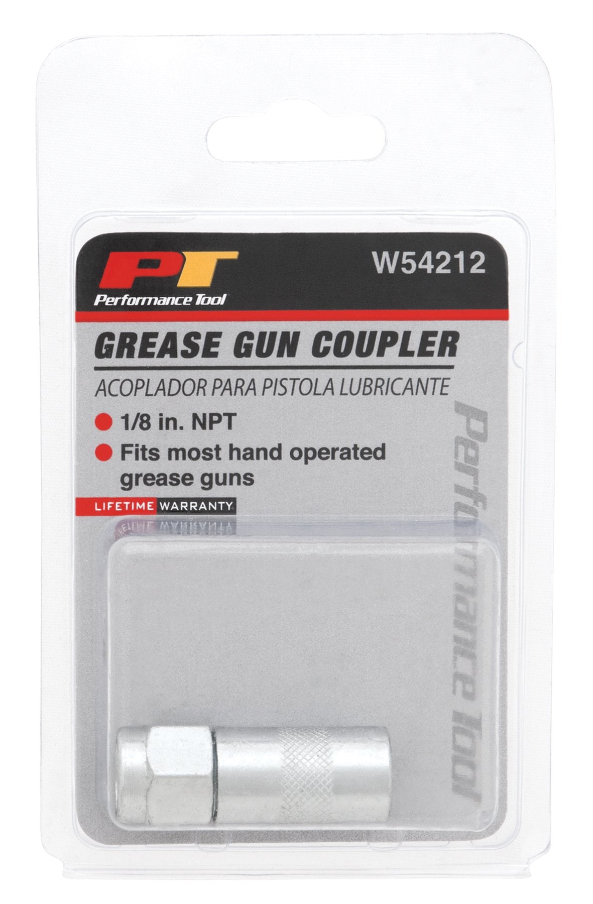 Q: What grease guns are compatible with the Performance Tool W54212 Grease Gun Coupler?A: The Performance Tool W54212 Grease Gun Coupler is designed to fit most hand-operated grease guns, making it a versatile accessory for various lubrication tasks.