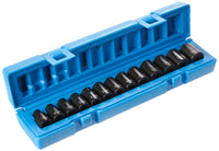Q: What is included in the 13-piece socket set?A: The set includes 13 metric sockets of standard length, designed to meet various fastening needs, all housed in a convenient molded storage case.