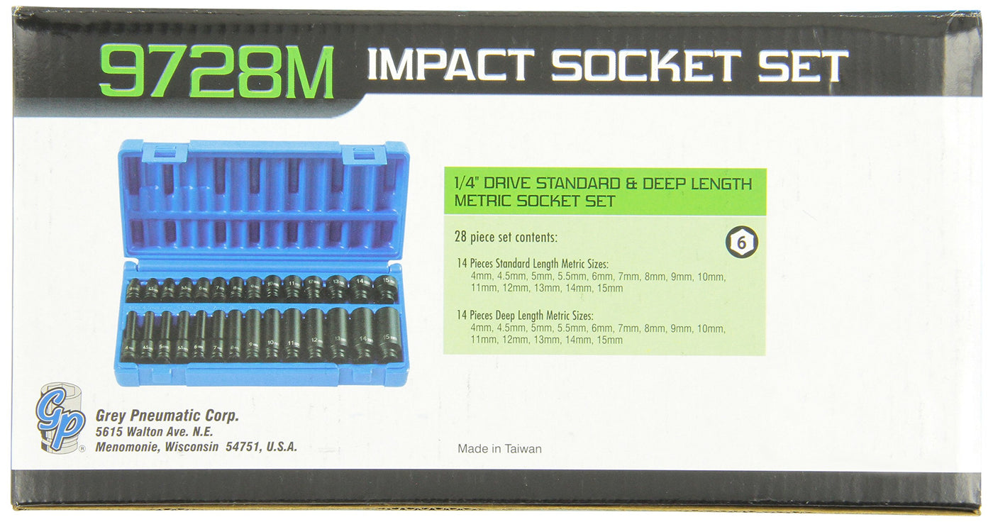Grey Pneumatic (9728M 1/4' Drive 28-Piece Deep Length Metric Master Socket Set