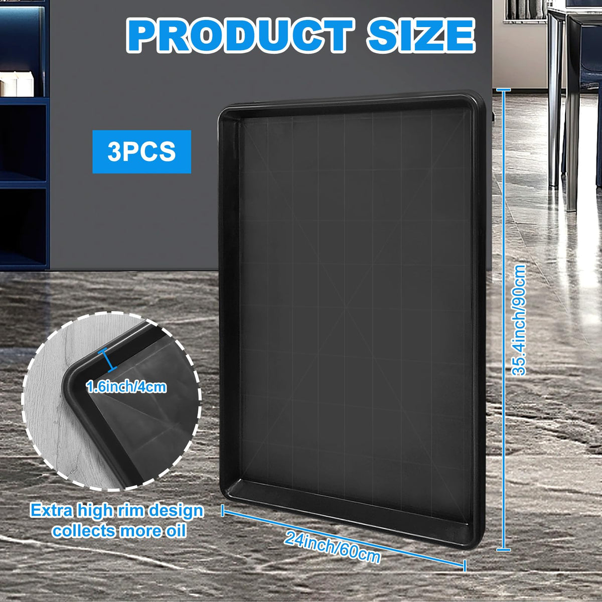 Hlimior 3Pcs Extra Large Auto Oil Drip Pan- 35.4 X 24 X1.6 Inches Oil Drip Tray For Under Car Plastic Oil Tray,Oil Catch Pan Replacement Tray To Keep Garage Floor Show Room Driveway Safe And Clean
