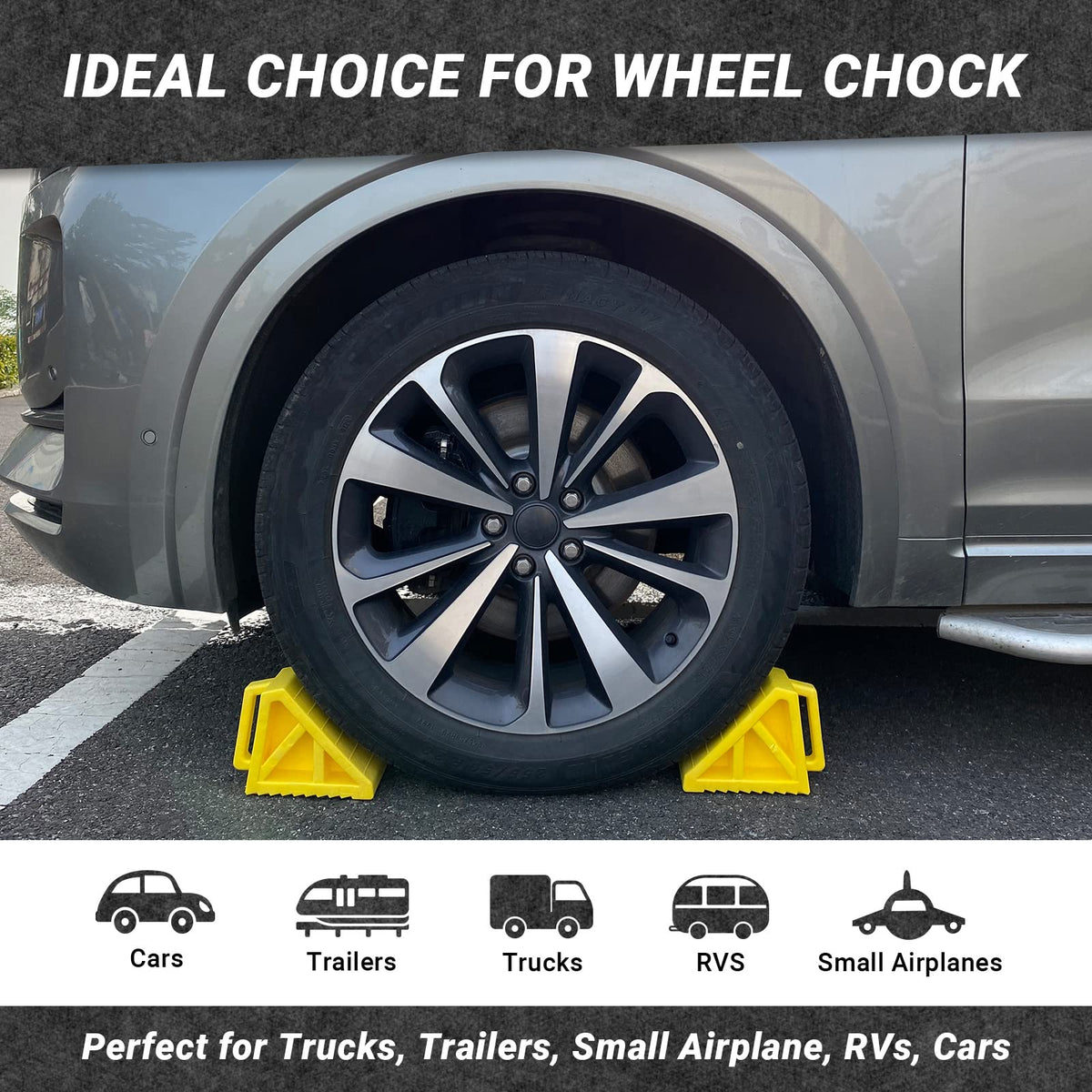 Q: Can these wheel chocks be used for different types of vehicles?A: Yes, these wheel chocks are versatile and suitable for a wide range of vehicles including cars, trucks, trailers, RVs, small airplanes, boats, and more. Their size and design make them perfect for preventing any vehicle from rolling away.
