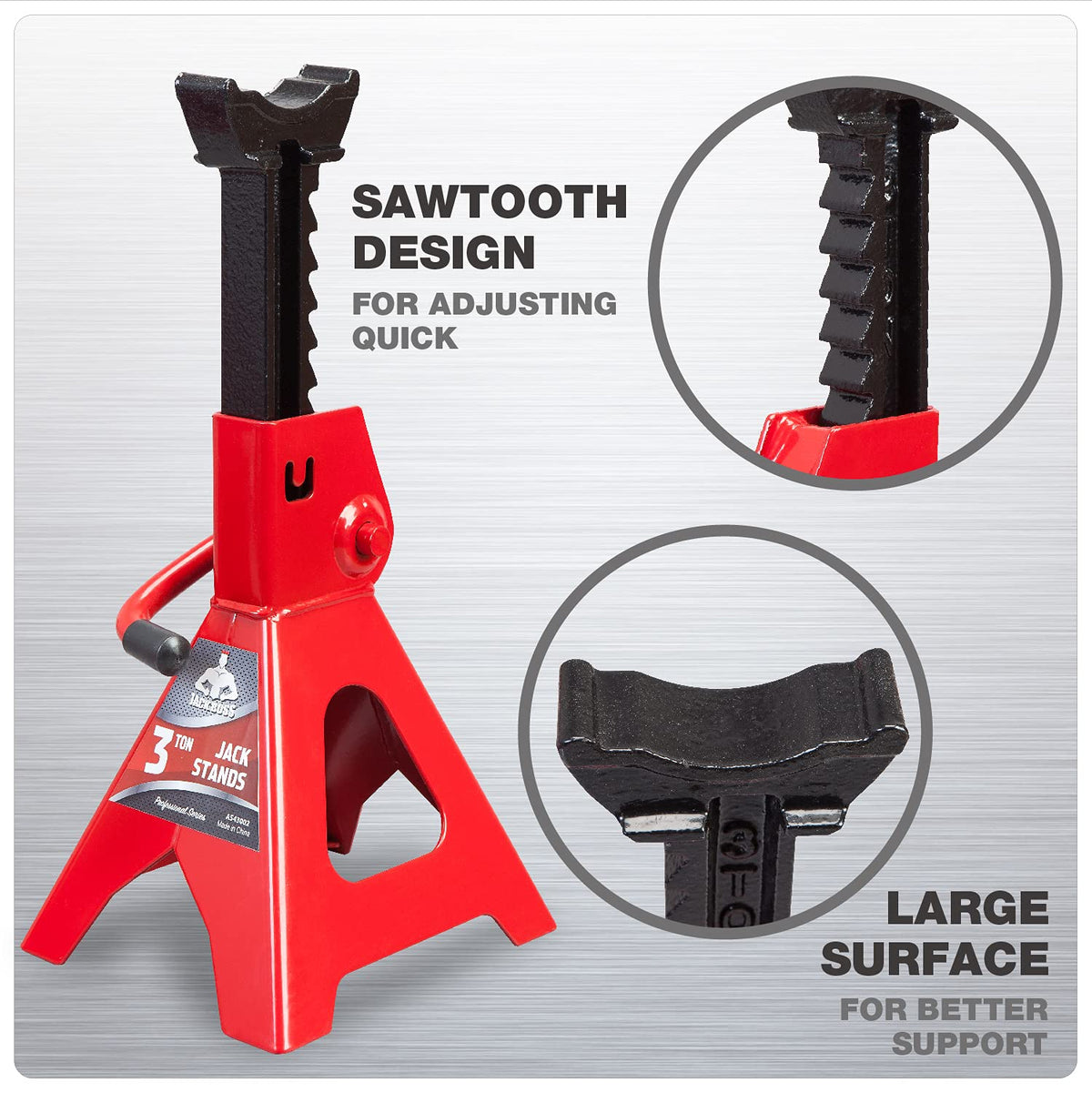 Jack Boss Jack Stands 3 Ton (6,600 Lbs) Car Jack Stand Adjustable Lifting For Automotive Small Suv, Truck, Boat Trailer, Red, 2