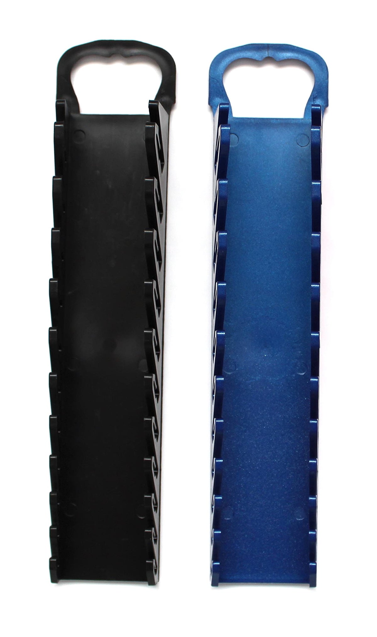 Jsp Manufacturing Plastic Portable 11-Tool Wrench Gripper Organizer Kit This Kit Comes In A Multiple Quantities & Color Choices. Please Select The Kit With The Correct Colors & Quantity Needed. The More You Buy The More You Save. Plastic Wrench Portable Gripper Organizer Tray Kit Great For Organizing And Easy Accessibility Flexible Gripping Teeth Allow For A Secure And Durable Hold And Easy Removal Grab-N-Go These Portable Organizers Are Study And Portable Carry Your Tools To The Job Site Secure In Their Slots Space Saver Foldable Handle Holds Up To 11 Wrenches Ranging From 3/8 Inch To 1Inch (Wrenches Not Included) Ideal For Toolboxes, Mobile Tool Carts, Pegboard Or Wall Storage Portable Or Can Be Installed Multiple Ways - 1. With Or Without Double-Sided Or Magnetic Tape, 2. With Screws Or Pegboard Hooks In The Convenient Screw Holes For Wall Mounting (Mounting Tape & Hardware Not Included) Made In Usa Kit Options Color - Select Correct Color Option Needed 1 Black Tray & 1 Blue Tray 1 Black Tray & 1 Red Tray 1 Red Tray & 1 Blue Tray Quantity - Select Correct Number Of Trays Needed 2 Piece Kit Includes: 2 Organizer Trays - 1 Red & 1 Blue 4 Piece Kit Includes: 4 Organizer Trays - 2 Red & 2 Blue Brand: Jsp Manufacturing Mpn: Pb-Wrenchholder-11-Tool Measures Approximately: See Images Overall Length: 10-1/8 Inches Overall Width: 2-1/8 Inches Overall Height: 1-6/8 Inches Folded Length: 9 Inches Bottom Width: 2 Inches Bottom Height: 7/8 Inch Fits: Stubby And Line Wrenches Ranging From 3/8 Inch To 1Inch - Wrenches Are Not Included Ideal For Toolboxes, Mobile Tool Carts, Pegboard Or Wall Storage See Our Additional Storage Products For Your Garage Tool Organizing Needs