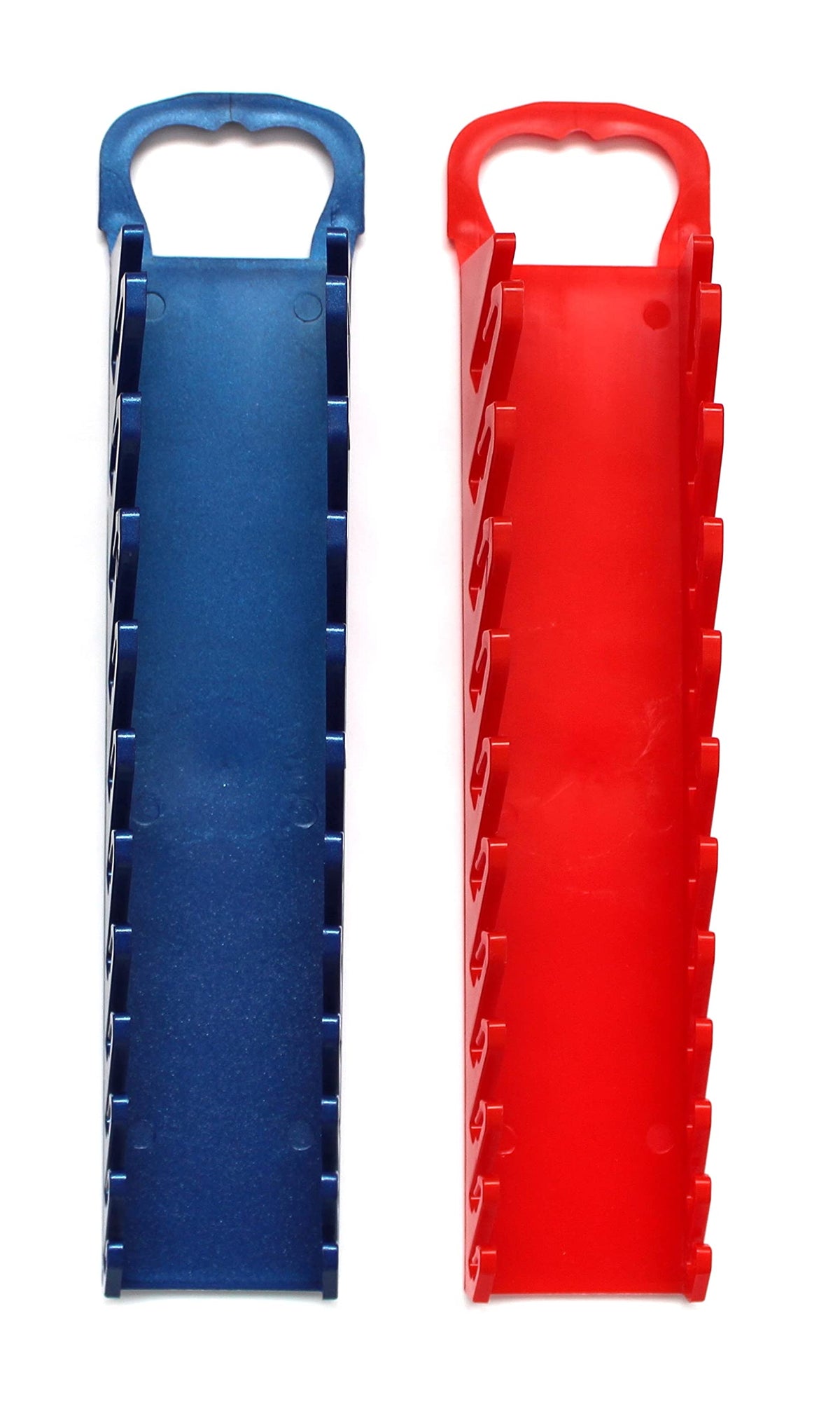 Jsp Manufacturing 11-Tool Gripper Wrench Organizer Tool Tray Kit For Stubby Or Line Wrenches (2 Piece Kit, Red & Blue)