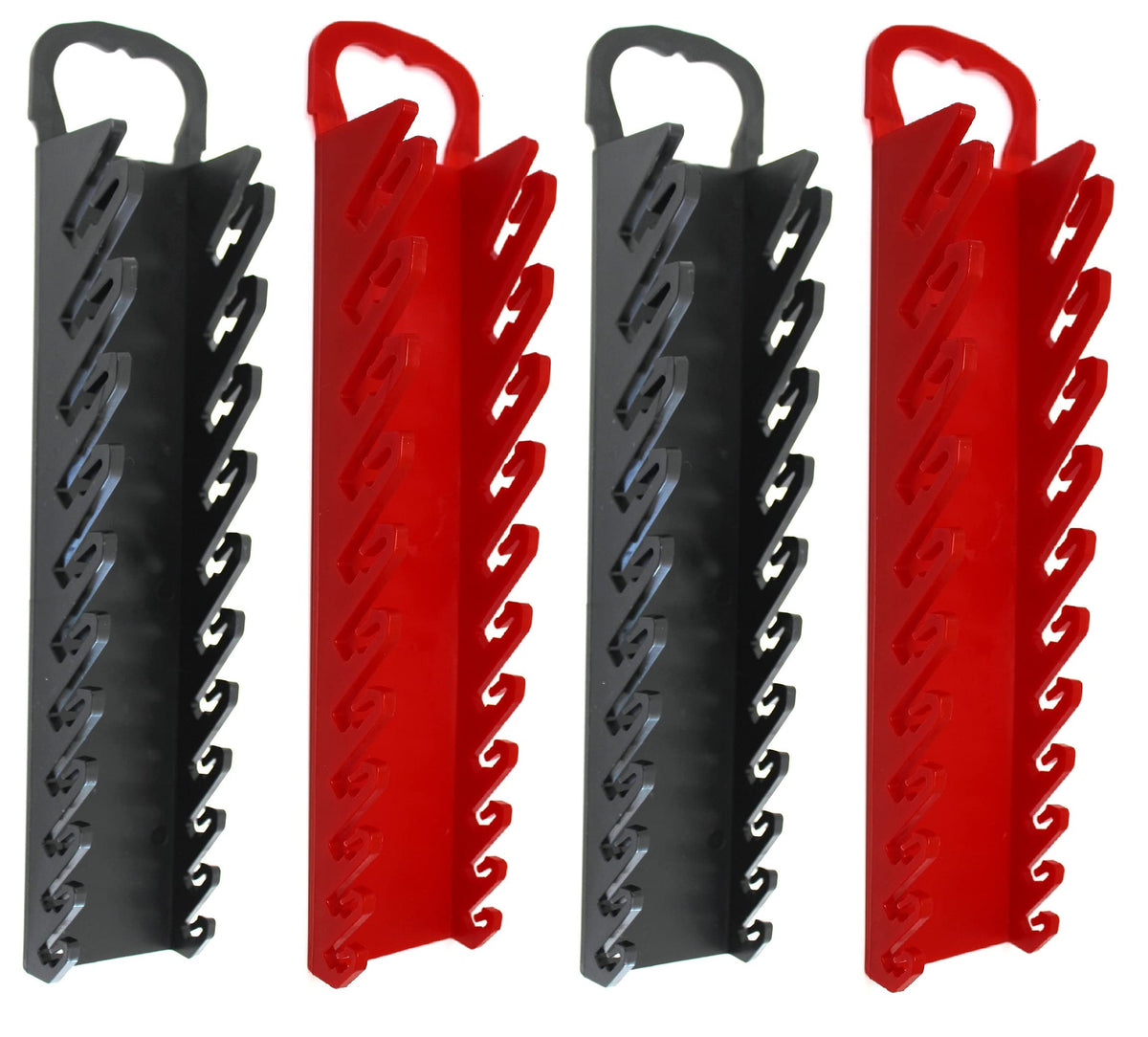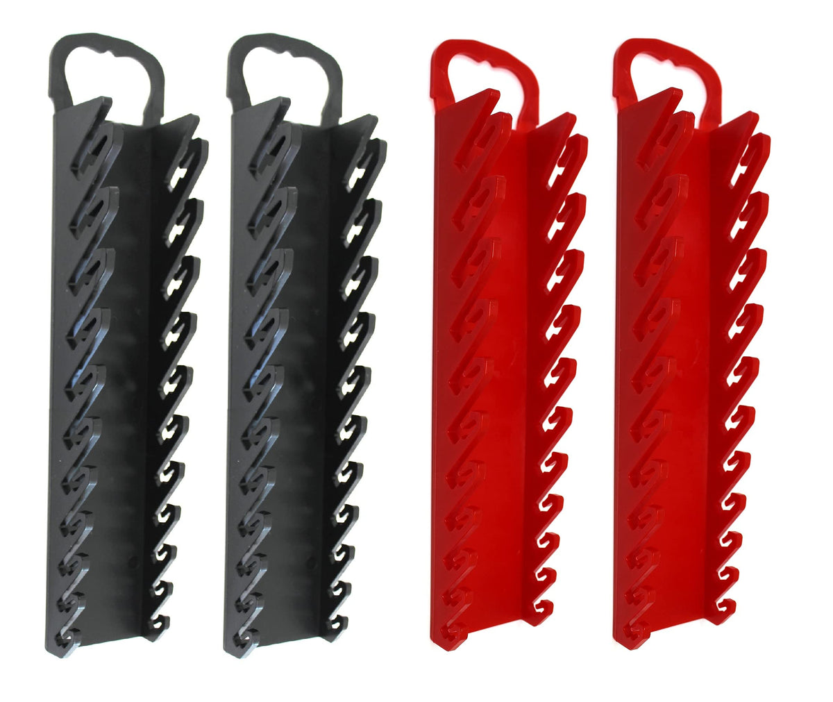 Jsp Manufacturing 11-Tool Gripper Wrench Organizer Tool Tray Kit For Stubby Or Line Wrenches (4 Piece Kit, Black & Red)