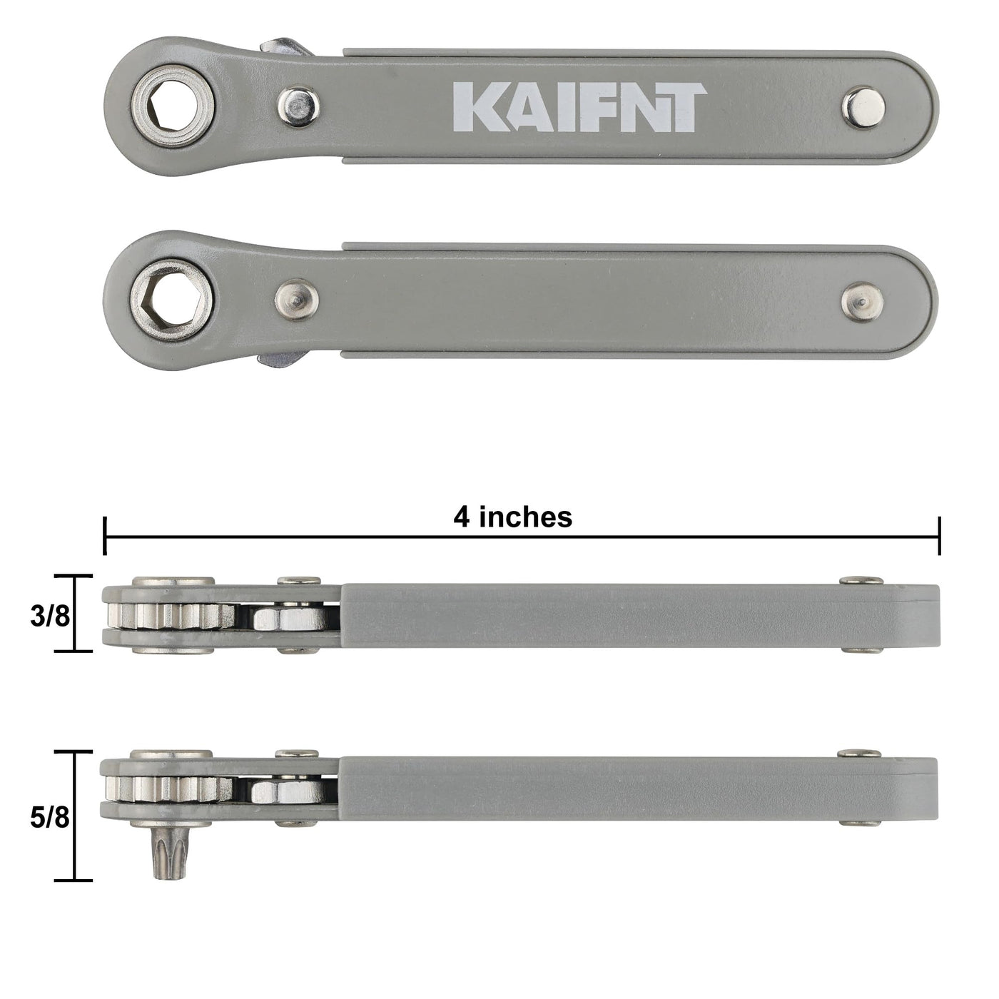 Q: How does the ultra-low profile driver handle benefit my projects?A: The 4-inch long, 3/8-inch thick driver handle of the KAIFNT Mini Ratchet Wrench Set is specifically designed for tight workspaces and close quarters, making it ideal for accessing hard-to-reach areas behind, between, or underneath barriers.