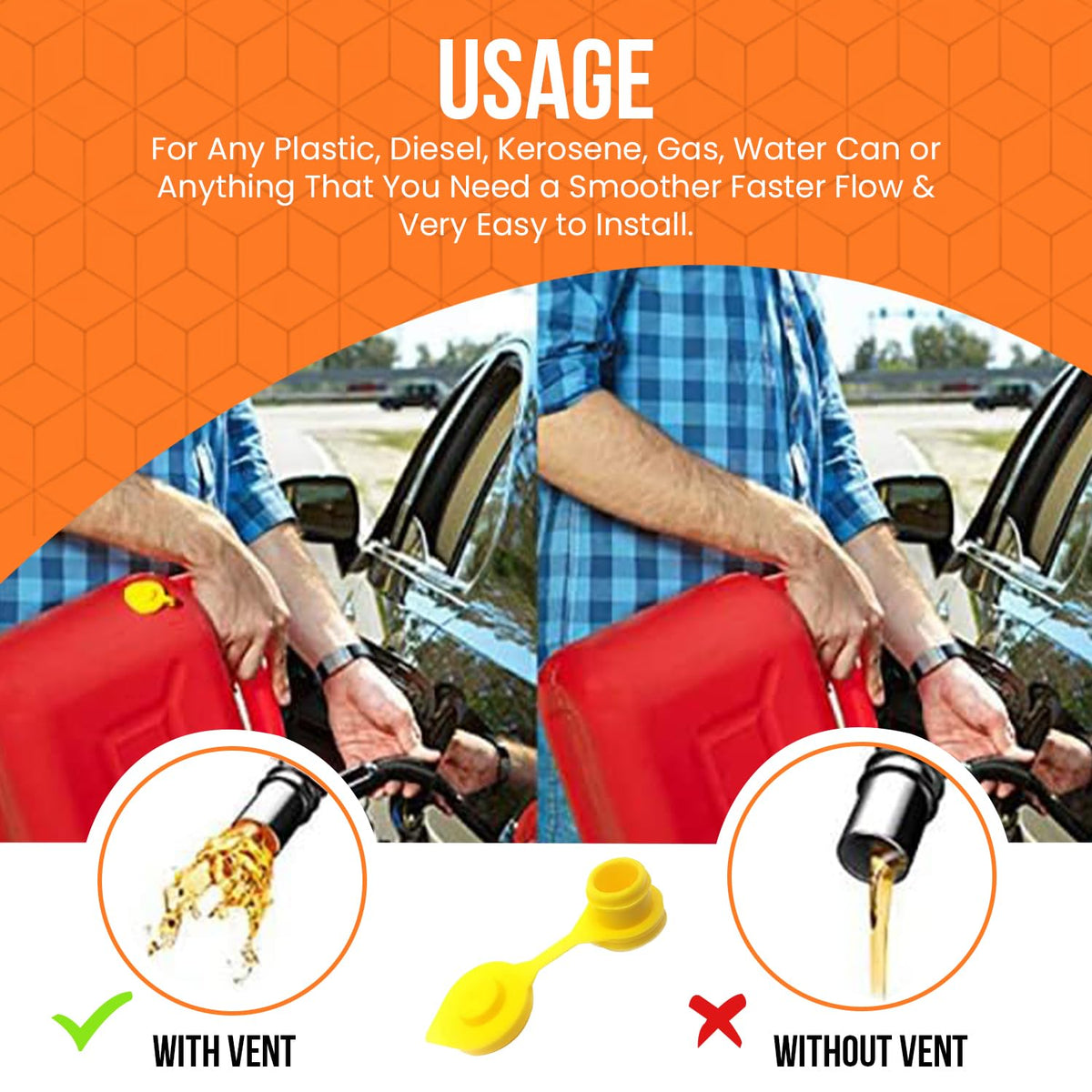 Q: Will these vent plugs improve the pouring of liquids?A: Yes, these vent plugs are engineered to facilitate smoother and faster fuel flow, effectively minimizing glugging and spills during pouring, which enhances efficiency and safety in fuel handling.
