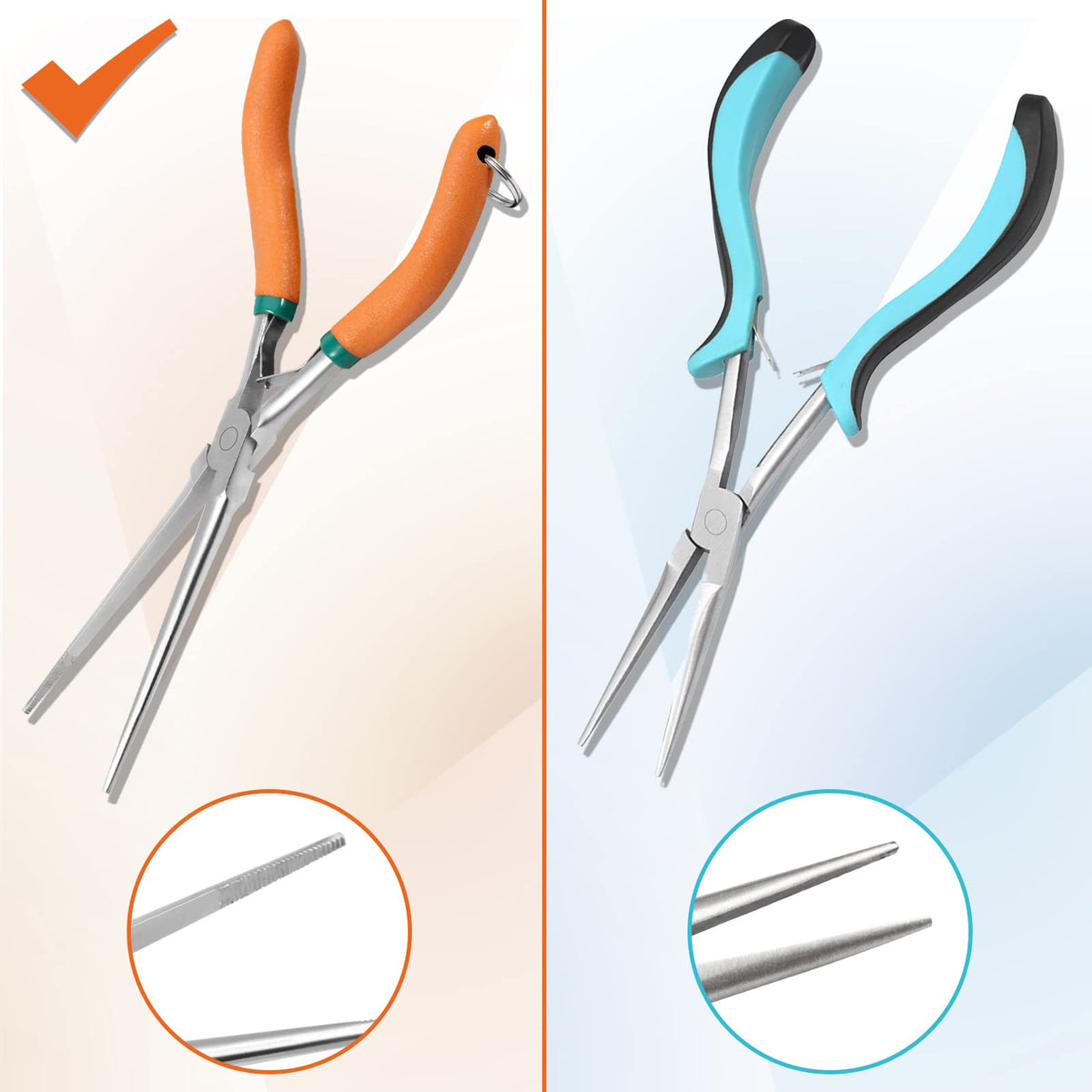 Leontool Long Reach Needle Nose Pliers 7' Thin Extra Long Needle Nose Pliers With Serrated Jaw Lanyard Double Leaf Spring Loaded For Jewelry Making Electrician Repair Tools In Tight Spaces
