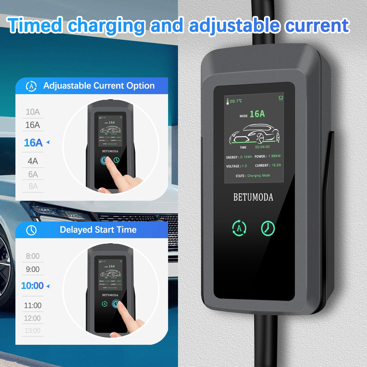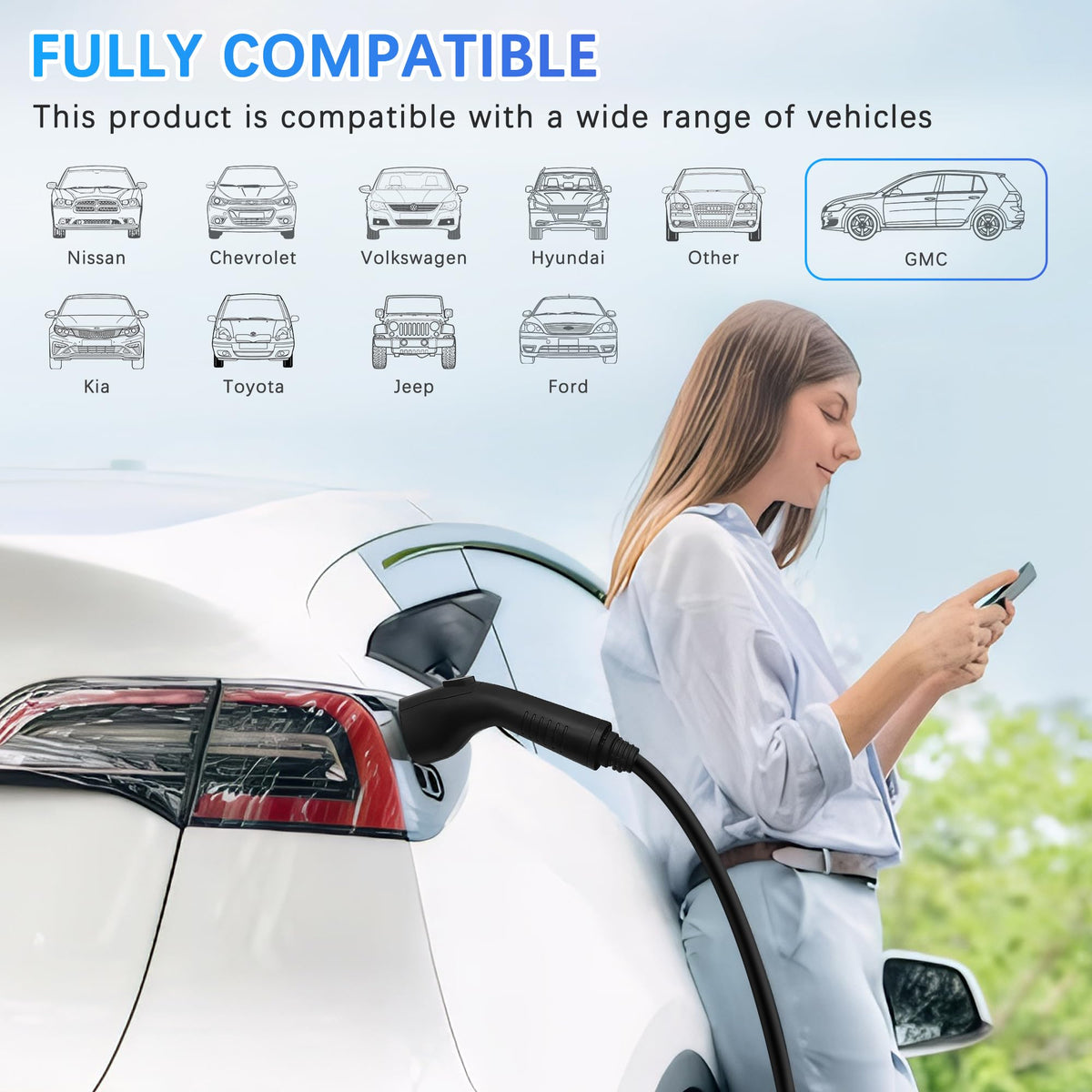 Level 1&2 EV Charger, 16Amp, Portable Charger for Home/Outdoor, 25FT Cable 110V-240V, J1772 Electric Cars, Charging Stations, Cu