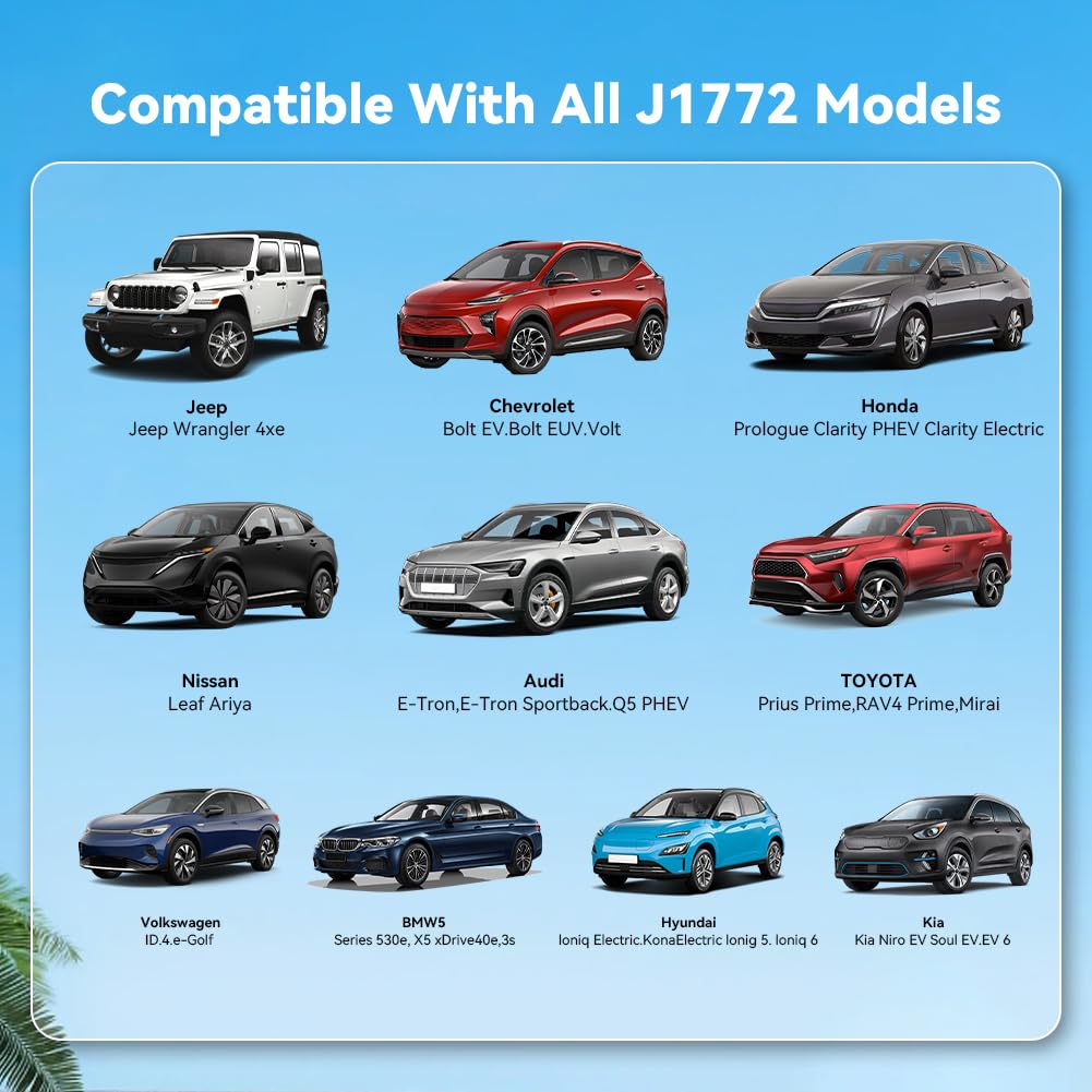 Level 1&2 EV Charger, Electric Vehicle Portable Charger, 8-16A Adjustable,with 25FT Cable, 110V-240V J1772 Electric Cars,NEMA 6-