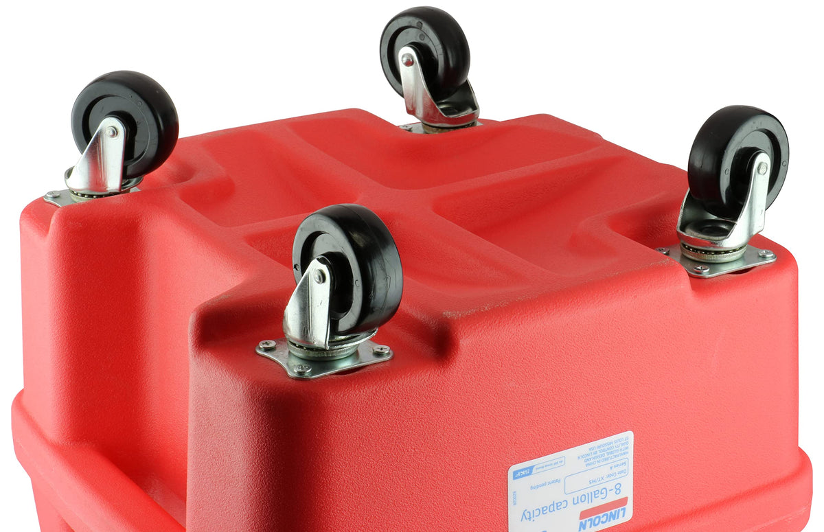 Q: Is the Lincoln 3508 Waste Fluid Drain Tank easy to move?A: Yes, the Lincoln 3508 is equipped with four 2.5-inch swivel casters, enabling easy mobility across shop floors, making it suitable for both DIY home garages and professional workshops.