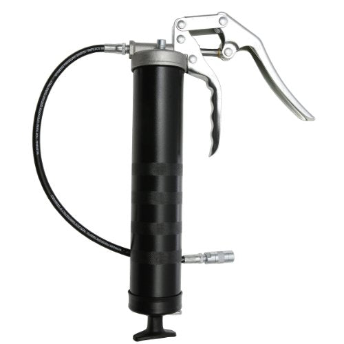 This Lincoln Pistol Grip Grease Gun features the convenience of cartridge OR suction loading. Plunger lock makes loading and bleeding easier. Zinc die-cast head has fine threads. Head cap vent releases trapped air fast! Case Included: No, Operating PSI: 6,000, Application: Automotive, agriculture, fleets, industry, Cordless: No, Includes: Follower rod lock for easy loading, Grease Fittings: 18 inch flexible extension