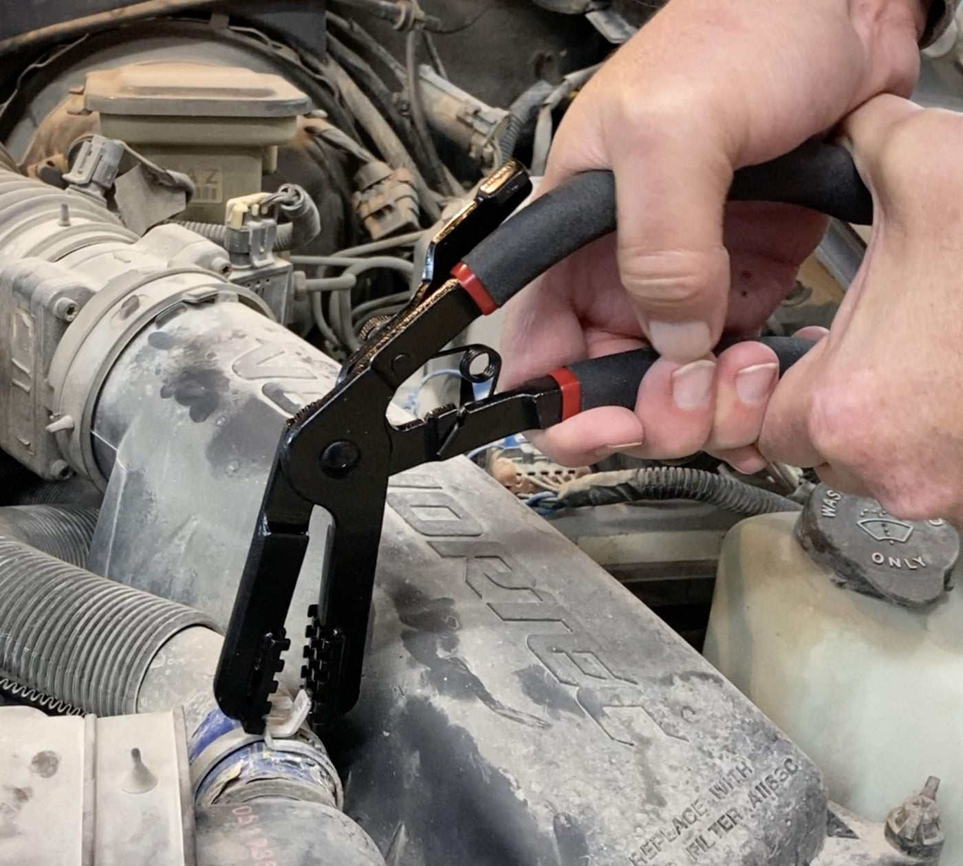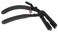 Cross-Cut Tip Design that Grip Most Hose Clamps from Multiple Angles. 17460 has an ergonomic curved design making pliers easy to use in hard-to-reach areas. Both 17460 and 17480 have a cross-cut tip design that grip most hose clamps from multiple angles. Ratcheting lock mechanism holds the clamp in an open position for hands-free use. Dual material grips for comfort. Works on most spring hose clamps.