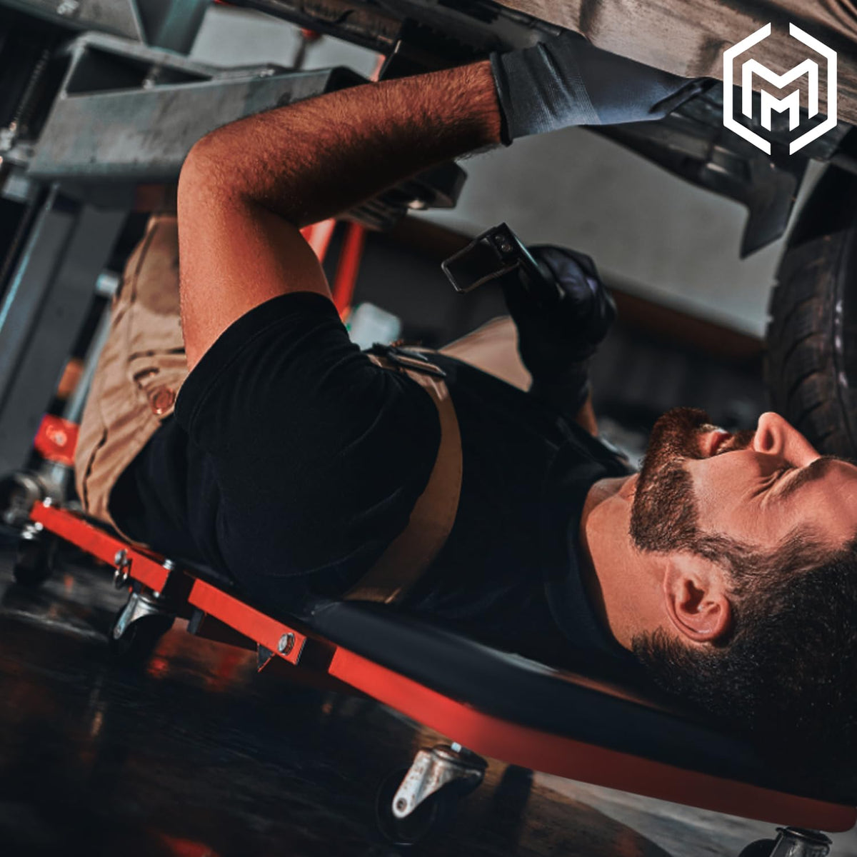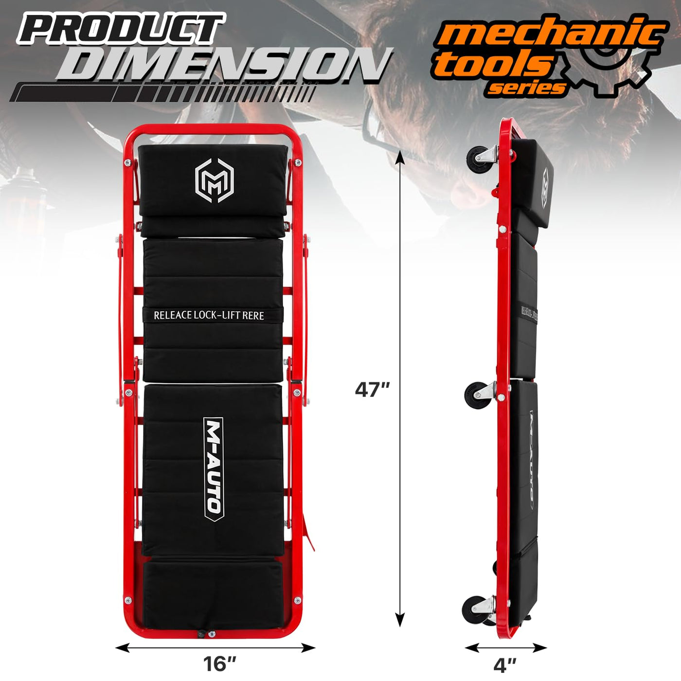 Q: What is the weight capacity of the M-AUTO Heavy-Duty Convertible Mechanic Creeper?A: The M-AUTO Heavy-Duty Convertible Mechanic Creeper has a weight capacity of 330 lbs, making it suitable for various automotive tasks.