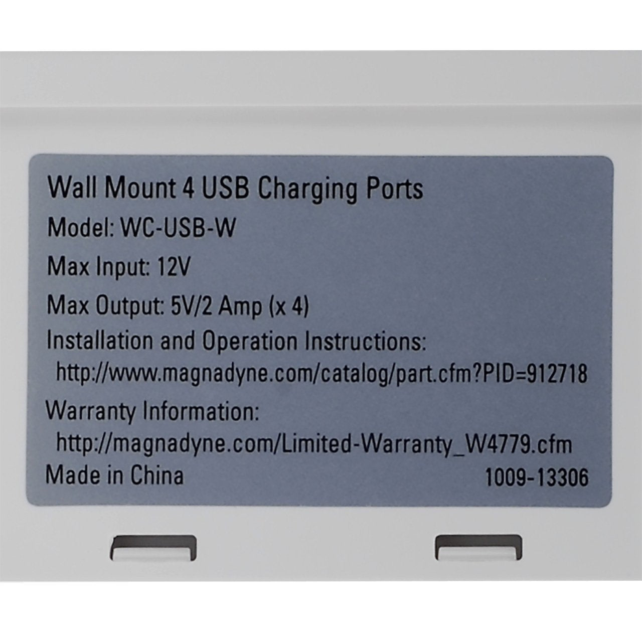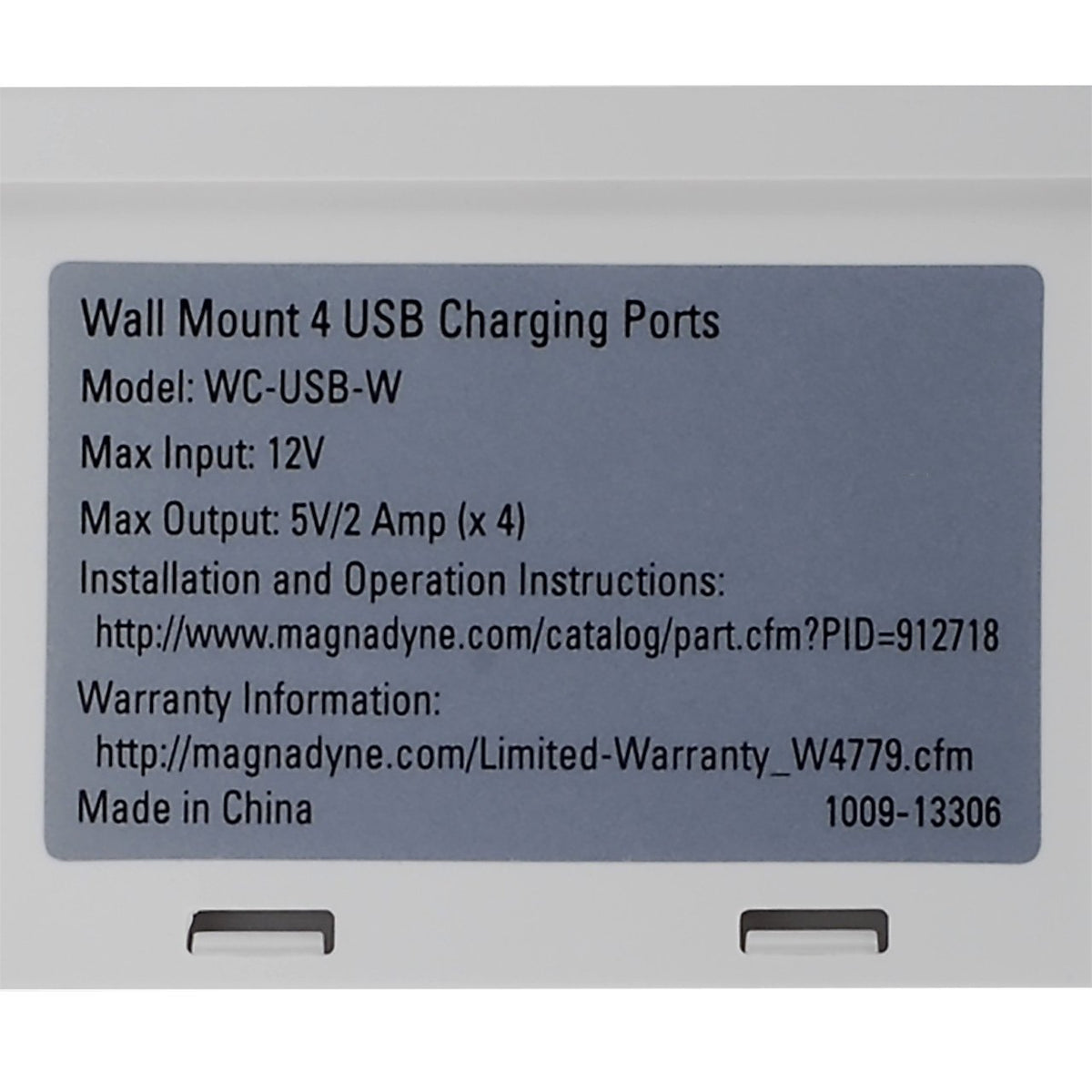 Magnadyne Wall Mount Usb-A Charging Ports For Rv & Vehicle Use, Includes Wall Plate (White)