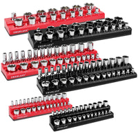 Q: How can I keep my tools organized using this set?A: This Magnetic Socket Organizer Set is an effective solution for decluttering toolboxes and work areas. Each tray is labeled clearly for easy identification, helping you find the right socket quickly.