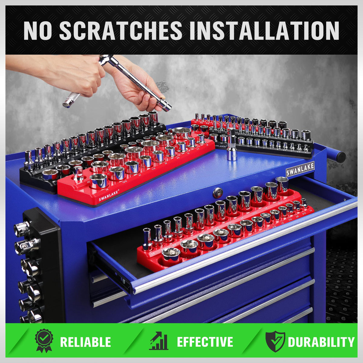 Q: Is the surface of the organizer safe for my metal tools?A: Absolutely, the rubber-made surface of the organizers is designed not to scratch or damage your metal tools and sockets, providing a safe storage solution.