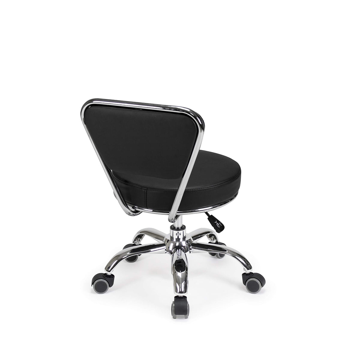 The Dayton Rolling Seat is an elegant and sophisticated short stool, lavishly upholstered with soft acetone resistant vinyl and padded a memory foam back and seat cushion for superior comfort. It comes finished with a polished chrome base and 5 easy roll-about castors for mobility. This rolling seat puts you at just the right height to work in the garage, task station and garden, especially since you can adjust it from 13 to 15 inches. The firm back keeps your spine in proper form and the padded seat cushion gives you comfort for the duration of the task or appointment. The five wheels make it easy to scoot closer to your task station or to slide around the garage. The polished chrome frame and sleek design will fit perfectly in any indoor/outdoor decoration, and the acetone-resistant vinyl cushions will prevent spills or drips from ruining your stools.