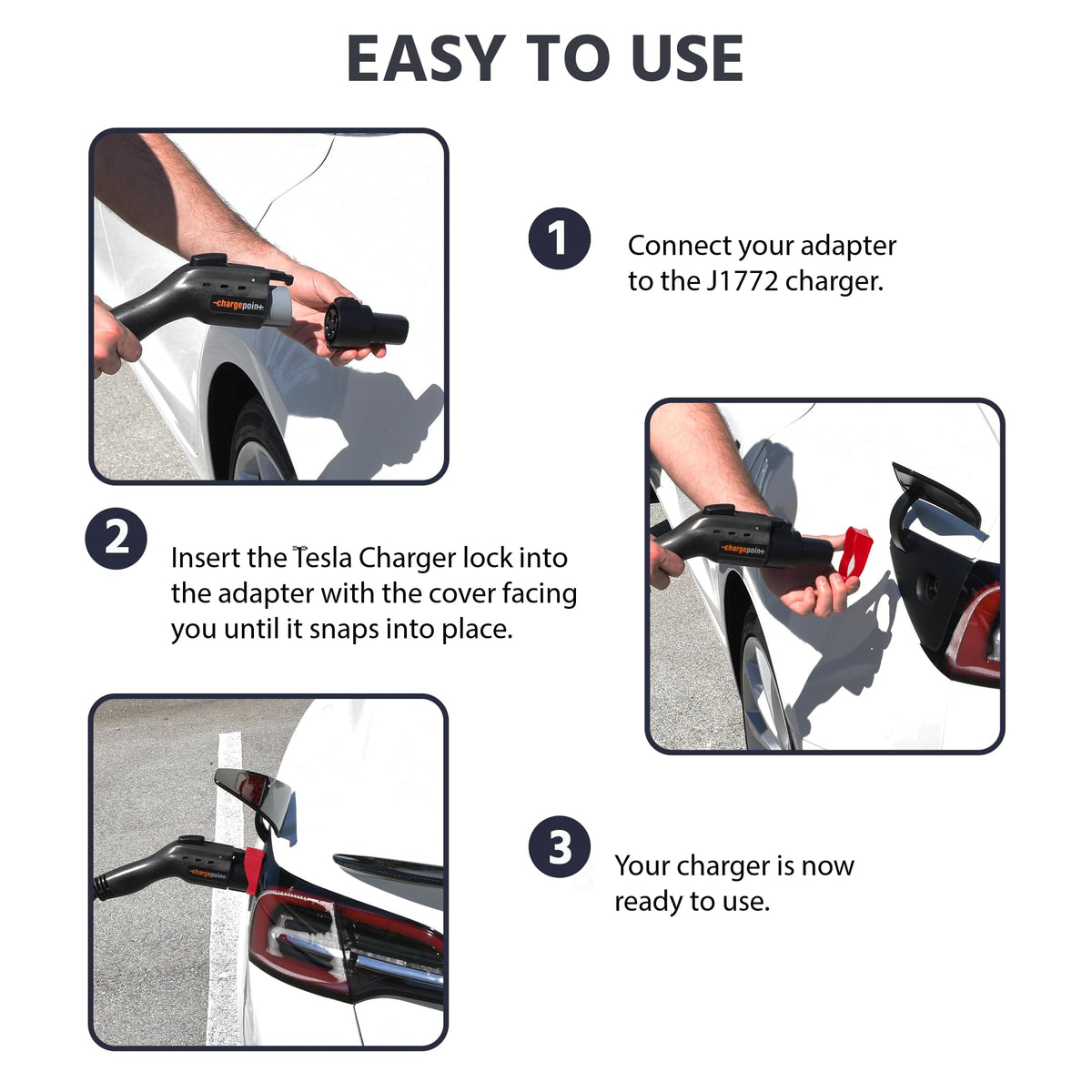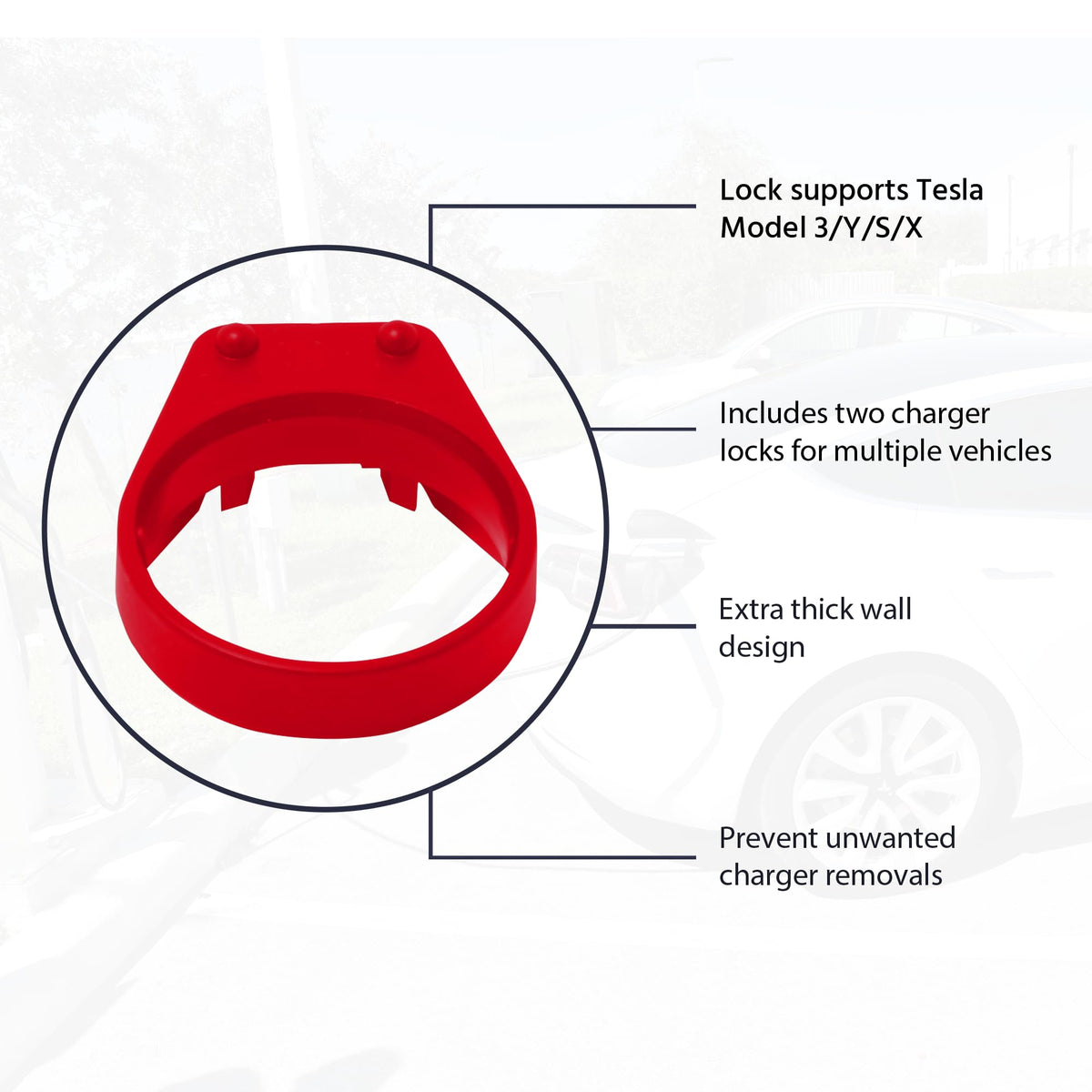 High quality and durable Tesla charger lock is a must have accessory for your Tesla to prevent unauthorized removal of your Tesla charger while in use. The J1772 lock will ensure that your Tesla is charged for the full duration it was in use. The Tesla J1772 lock is injection molded (not 3-d printed) and made from high quality material that is heat-resistant for hot days and can withstand drops and long term use. The ring lock for J1772 adapter for Tesla plug in charger can be used at numerous charging networks, including but not limited to ChargePoint and SemaConnect. Our package includes two locks for use on multiple vehicles or as a spare in case one is misplaced.
