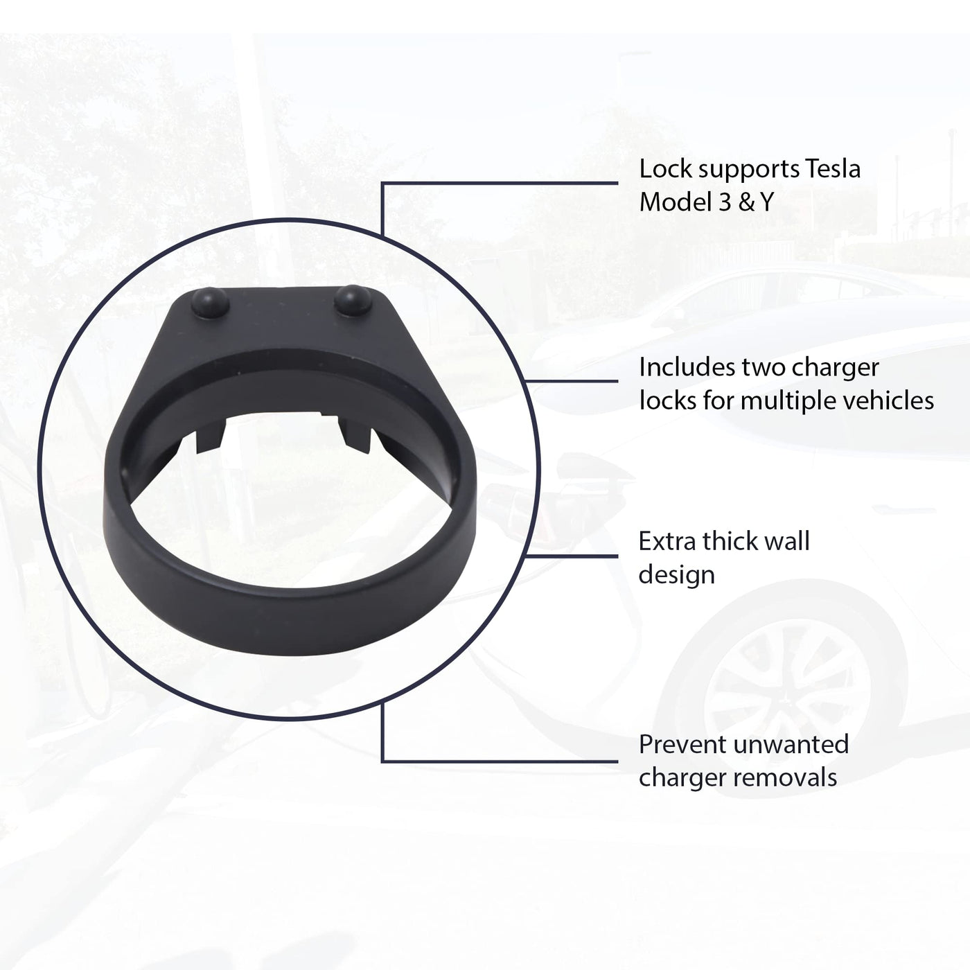 High quality and durable Tesla charger lock is a must have accessory for your Tesla to prevent unauthorized removal of your Tesla charger while in use. The J1772 lock will ensure that your Tesla is charged for the full duration it was in use. The Tesla J1772 lock is injection molded (not 3-d printed) and made from high quality material that is heat-resistant for hot days and can withstand drops and long term use. The ring lock for J1772 adapter for Tesla plug in charger can be used at numerous charging networks, including but not limited to ChargePoint and SemaConnect. Our package includes two locks for use on multiple vehicles or as a spare in case one is misplaced.