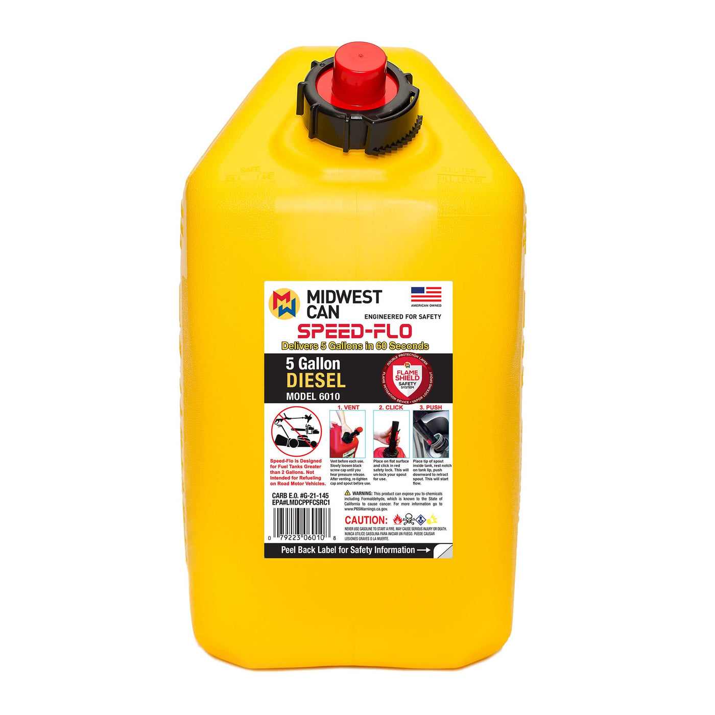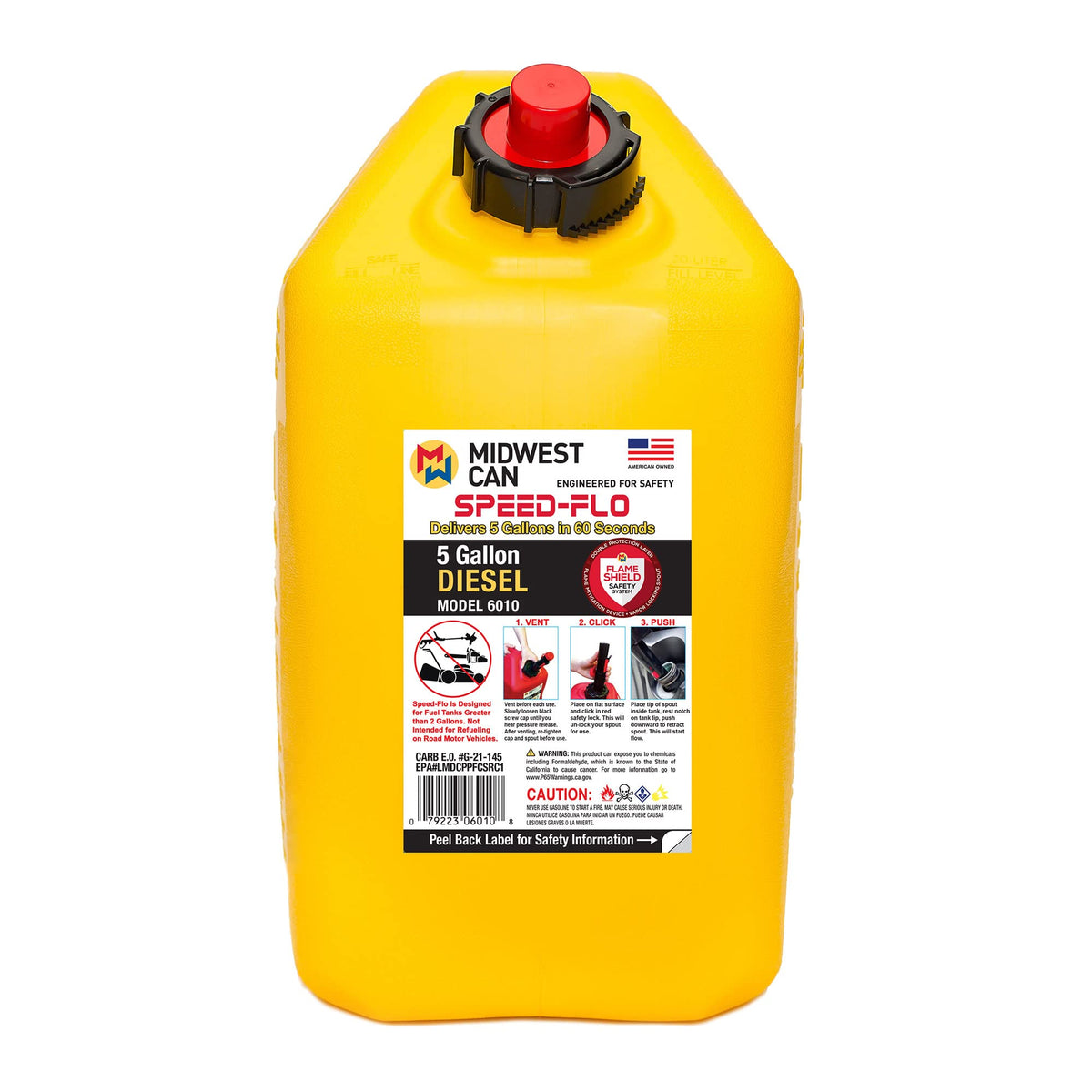Midwest Can Company Mc-6010 Pro Line Gasoline Can Fuel Container Jug With Speed-Flo Spout And Flame Shield System, 5 Gallons, Ye