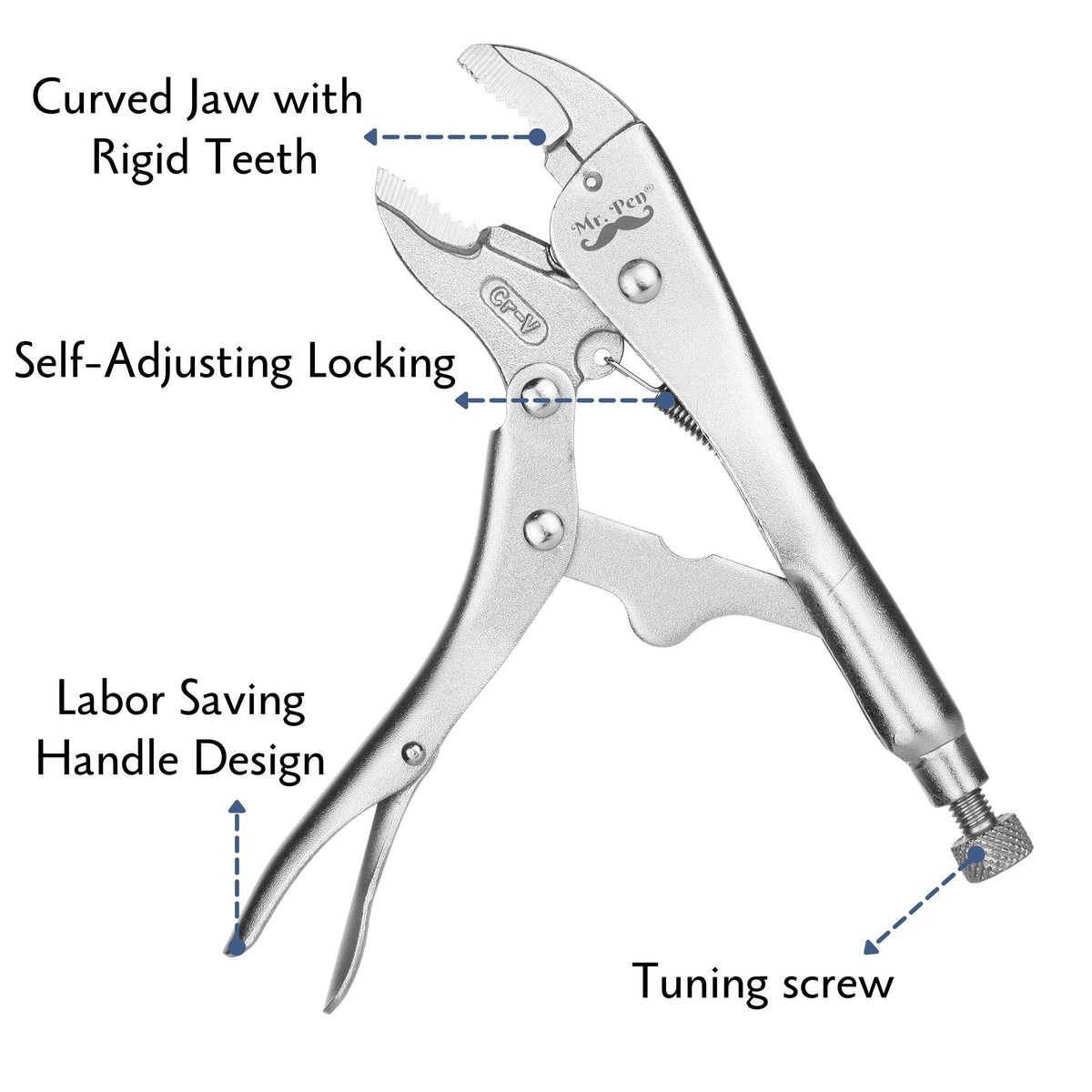Q: How do I care for my locking pliers to ensure they last?A: To maintain your Mr. Pen locking pliers, clean them after each use with a damp cloth to remove dirt and debris. Avoid exposure to moisture to prevent rusting, and periodically check the adjusting screw to ensure it operates smoothly.