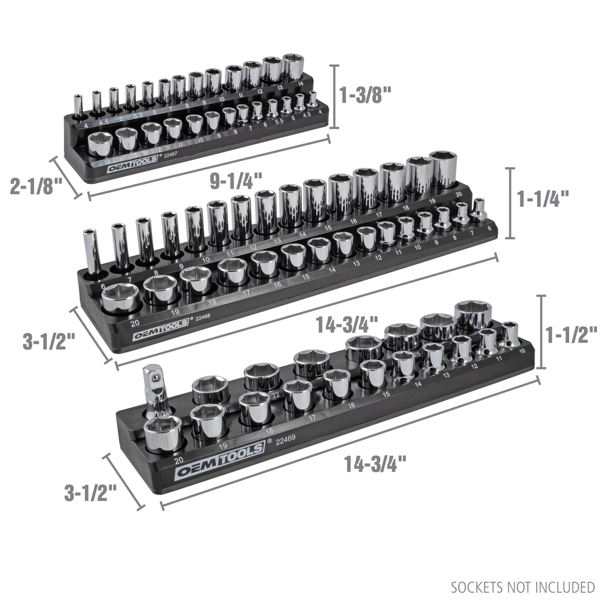 Oemtools 22487 3 Piece Metric Magnetic Socket Organizers, Socket Organizers For Toolboxes, Socket Organizer, Magnetic Socket Hol