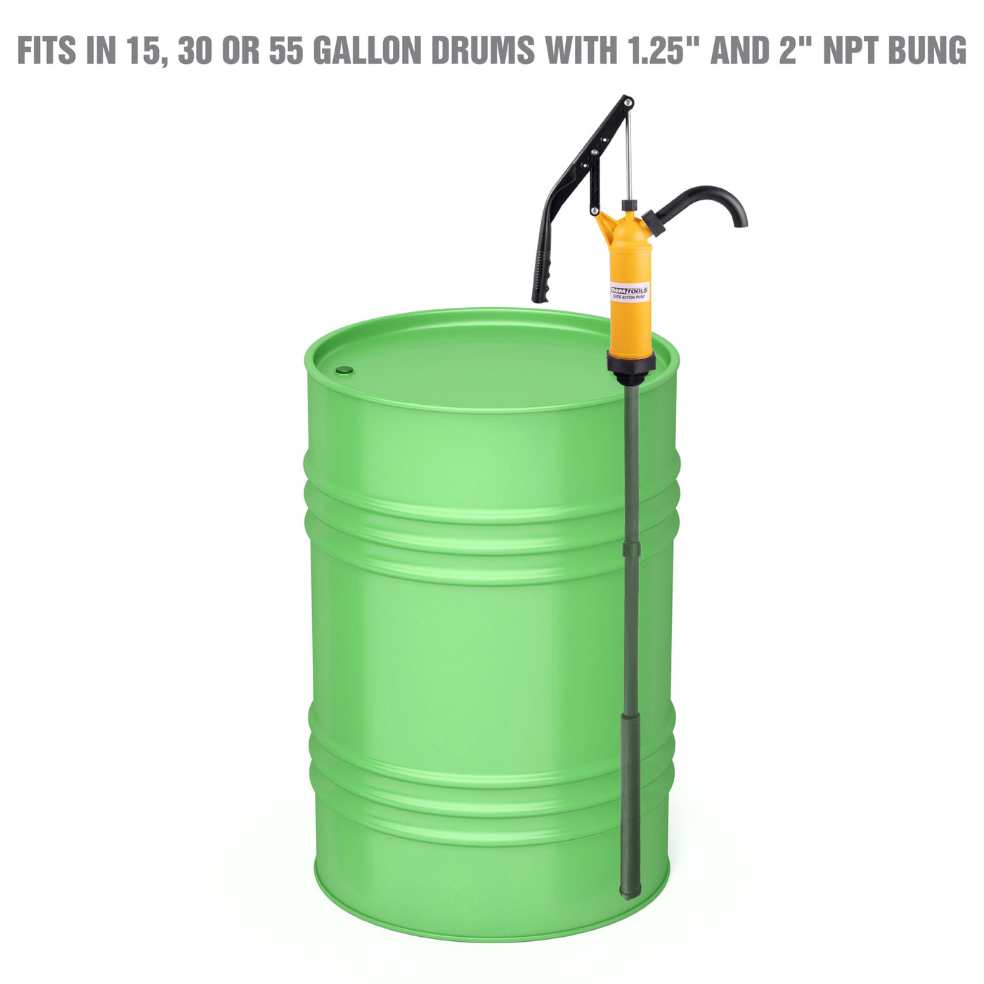 OEMTOOLS 24472 Fluid Pump/Siphon | Works in 15, 30, & 55 Gallon Drums with 1.25 Inch or 2 Inch NPT Bung | Pump Fluid, Oils, Chem