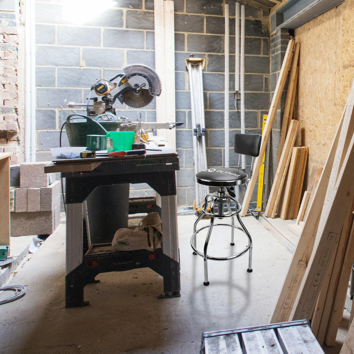 Olympia Tools 82-738 Adjustable Hydraulic Work Stool, Black