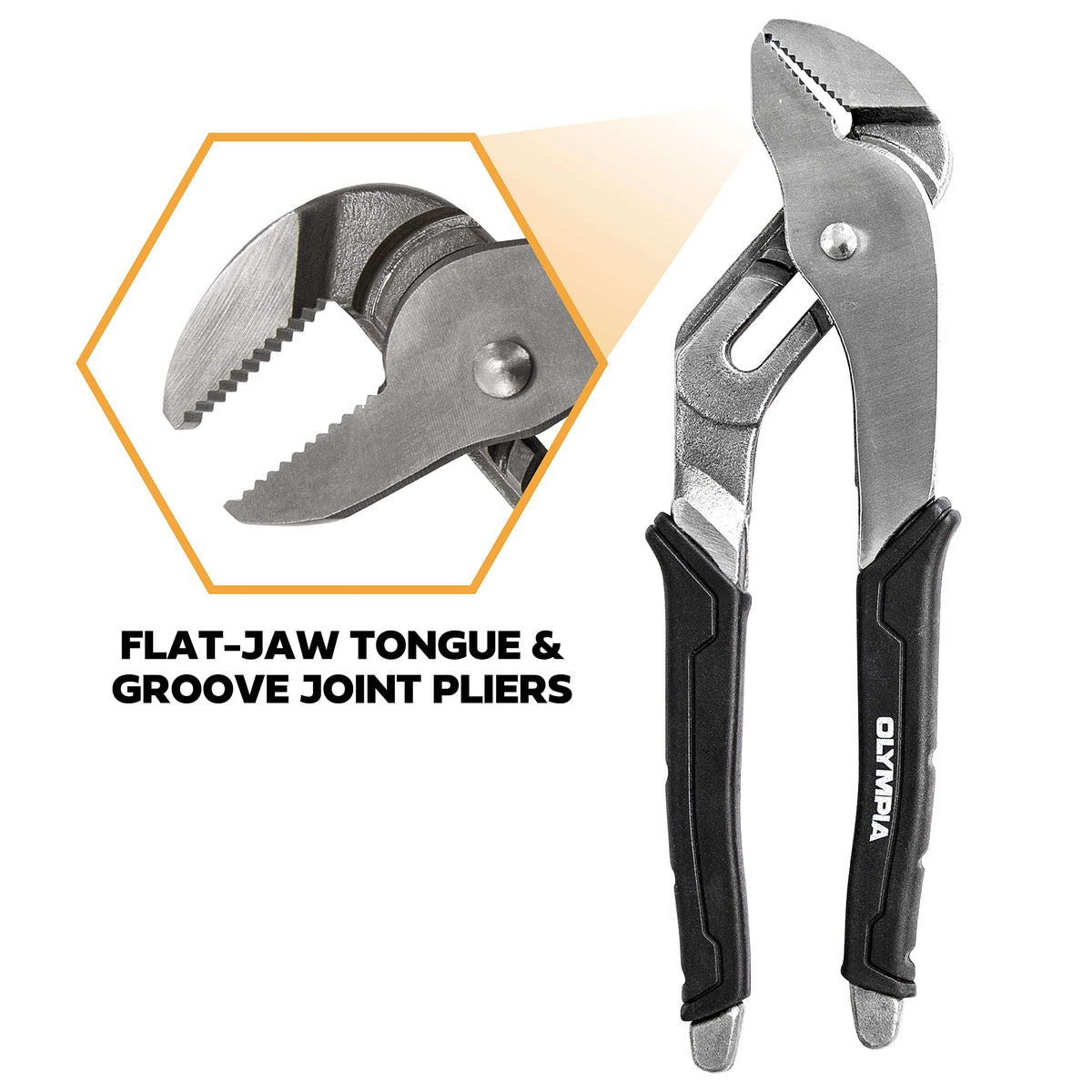 The tongue and groove pliers are versatile utility pliers, ideal for objects of all shapes and sizes. Includes three of the most essential pliers: 8in, 10in, and 12in Groove Joint Pliers. They are forged from carbon steel and precision machined for long life and durability. The serrated jaws adjust without changing the distance of the handles, giving you the maximum leverage. Ergonomic bi-material handles offer comfort to the user. The unique tooth design allows for better grip and increases torque transfer with less effort. Olympia Tools Tongue and Groove Pliers are widely used by plumbers, electricians, and other professionals.
