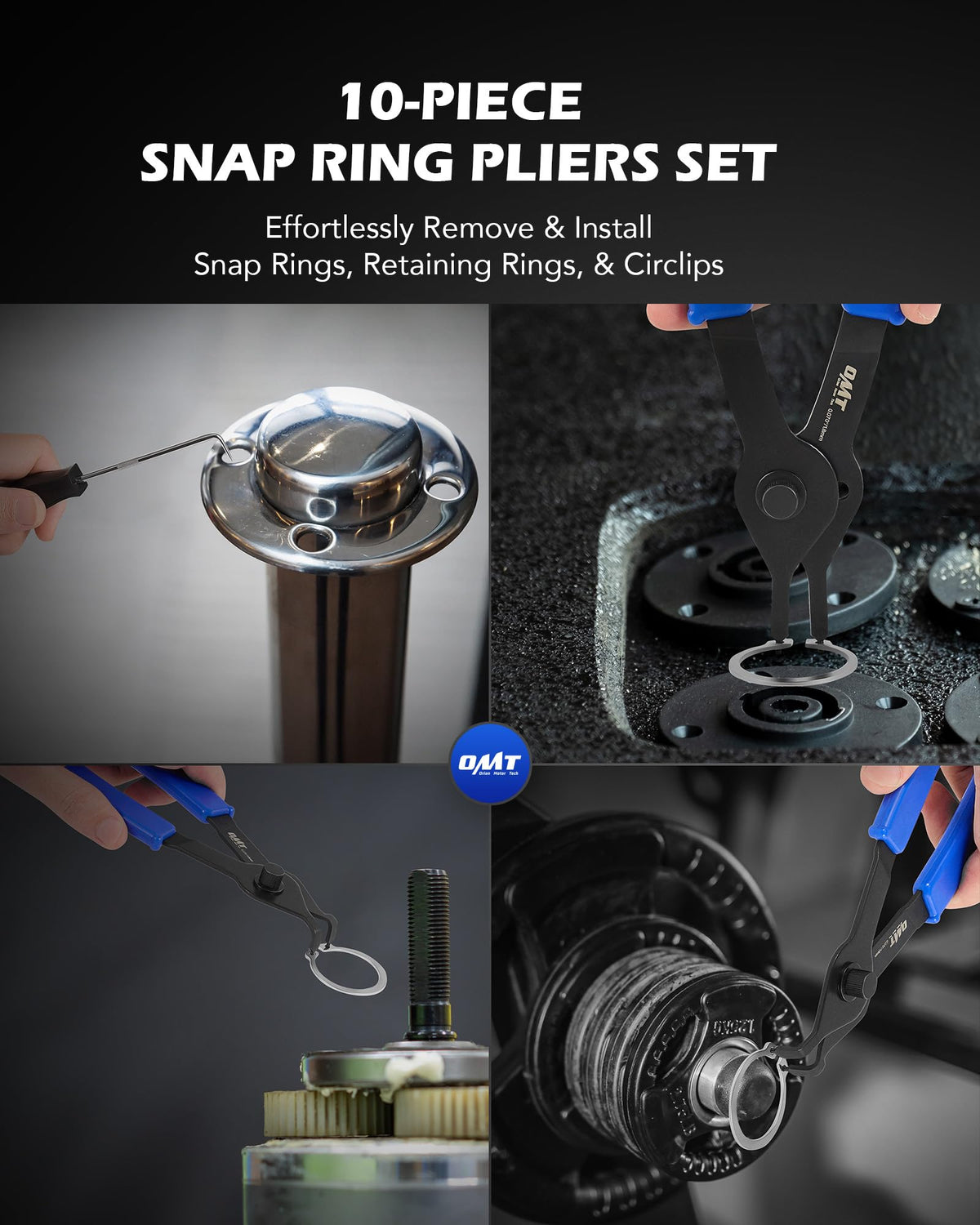 Orion Motor Tech 10pc Snap Ring Pliers Set, Internal & External Circlip Pliers Set with Straight Bent Pliers Hook and Pick, Heavy Duty Snap Ring and Circlip Removal Tool with Storage Case & Gloves