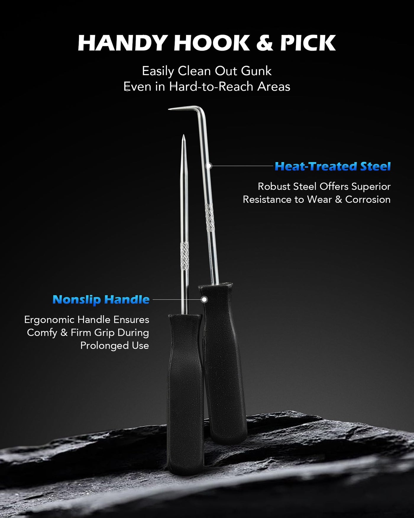 Description Ever found yourself wrestling with stubborn retaining rings? Orion Motor Tech's 10-piece snap ring pliers set is here to assist every DIY enthusiast and professional mechanic. This comprehensive snap ring and circlip removal tool set includes 4 bent pliers, 4 straight pliers, a pick, a hook, and a pair of gloves for your needs. Crafted from blackened heavy-duty steel, our circlip pliers set is designed to withstand heavy use. Each pair of pliers comes in different size to suit your task, while the adjustable knob allows for quick switching between internal and external rings. The clear markings on the case enhance efficiency, helping you identify and select the right size in seconds. Organized in a compact, portable case, this straight and bent pliers set ensures you have everything you need within easy reach.