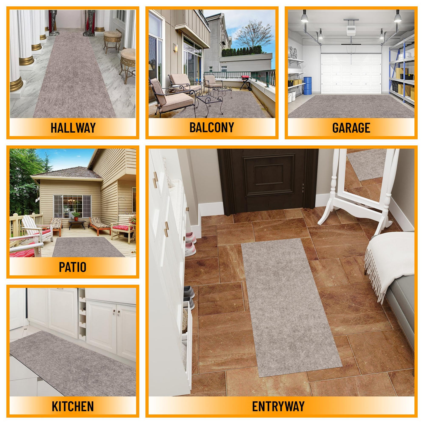 Q: Is the rug suitable for outdoor use?A: Yes, this rug is designed for both indoor and outdoor use, featuring a durable polyester material and a non-slip rubber backing that makes it perfect for patios, garages, and high-traffic areas.
