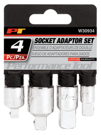 Performance Tool W30934 Socket Adapter Set - Chrome Vanadium Alloy Steel Construction For Strength & Durability - Includes 4 Siz