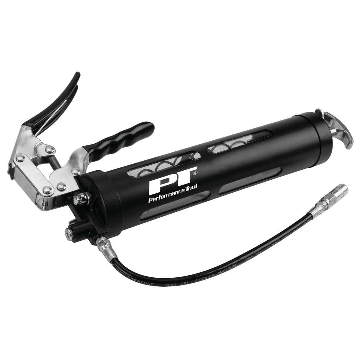 Q: Is the Performance Tool W54294 Grease Gun durable for long-term use?A: Absolutely, the grease gun features a black painted barrel for enhanced durability and long life, ensuring it can withstand regular use in various applications.