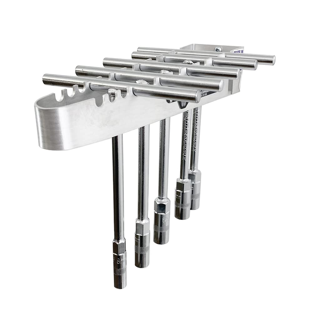 ?? Pit Posse'S T-Handle Rack Holder Allows You To Keep Up To 9 T-Handle Socket Wrenches Organized And Always On Hand/Ready For Use! Declutter Your Area And Never Lose Your T-Handles Again!?? This Item Was Made Utilizing The Finest Grade Aluminum, Providing You With A Sturdy Yet Light Weight T-Handle Rack That Is Rust-Proof And Will Last For Years!?? Pit Posse Has You Covered! We Already Thought Of Everything By Including All The Necessary Mounting Hardware And Predrilled The Mounting Holes! Now You Can Hang This Rack Up Immediately And Start Using Within Minutes Of It Arriving.?? Our T-Handle Rack Can Be Used Virtually Anywhere! Can Be Used In Enclosed Race Trailers, Automotive Shops, Garages, Or As A Work Station Accessory. Also Makes As A Great Gift For Gear-Heads Or Motorcycle/Car Enthusiast.?? Your Satisfaction Is Our #1 Priority And That Is Why We Offer A 5 Year Warranty On This T-Handle Rack. We Take Pride In Manufacturing Motorcycle Parts That Save You Time And Money, While Not Compromising On Quality. If You Have Any Questions, Concerns, Or Issues With This Product, Please Reach Out To Us And We Gladly Make It Right!&Nbsp;Features:Holds Up To 9 T-Handlesmade In The Usaheavy Duty Aluminumrust-Proofmounts On Wall Or Hangs On Your Tool Boxideal For Enclosed Trailers, Gargages, Or Shopsmounting Hardware And Predrilled Holes Included5 Year Warranty