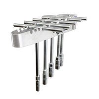 Q: What mounting options are available for the T Handle Rack?A: The T Handle Rack can be wall mounted or hung on your toolbox, providing flexibility in how you want to organize your T-handles.