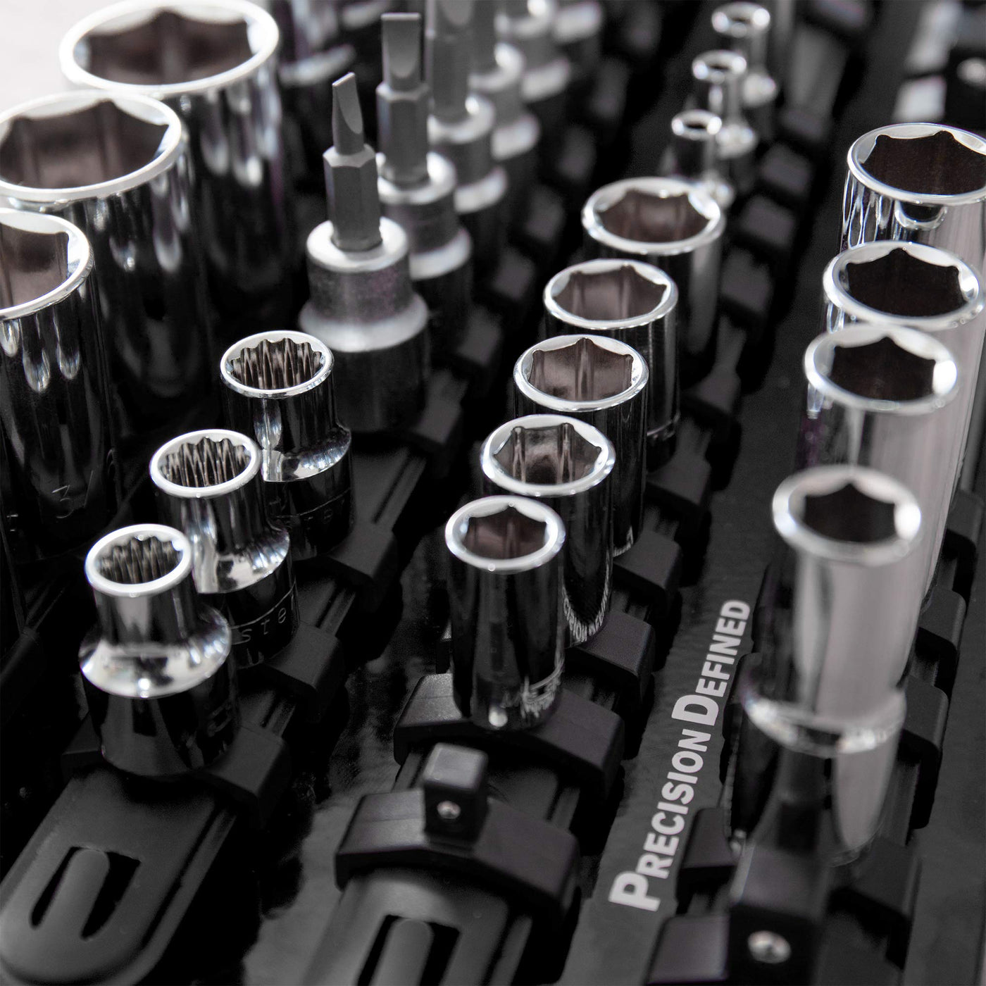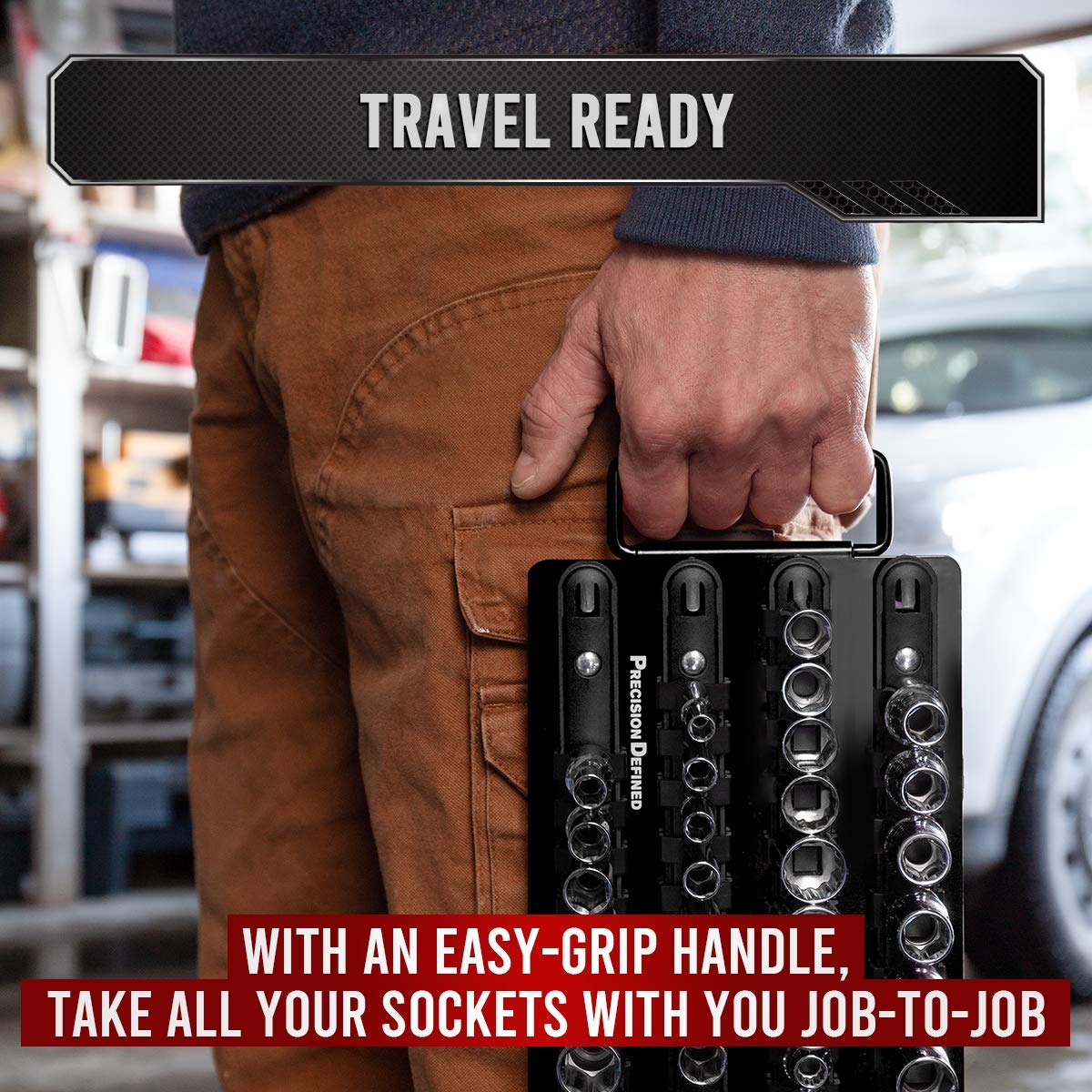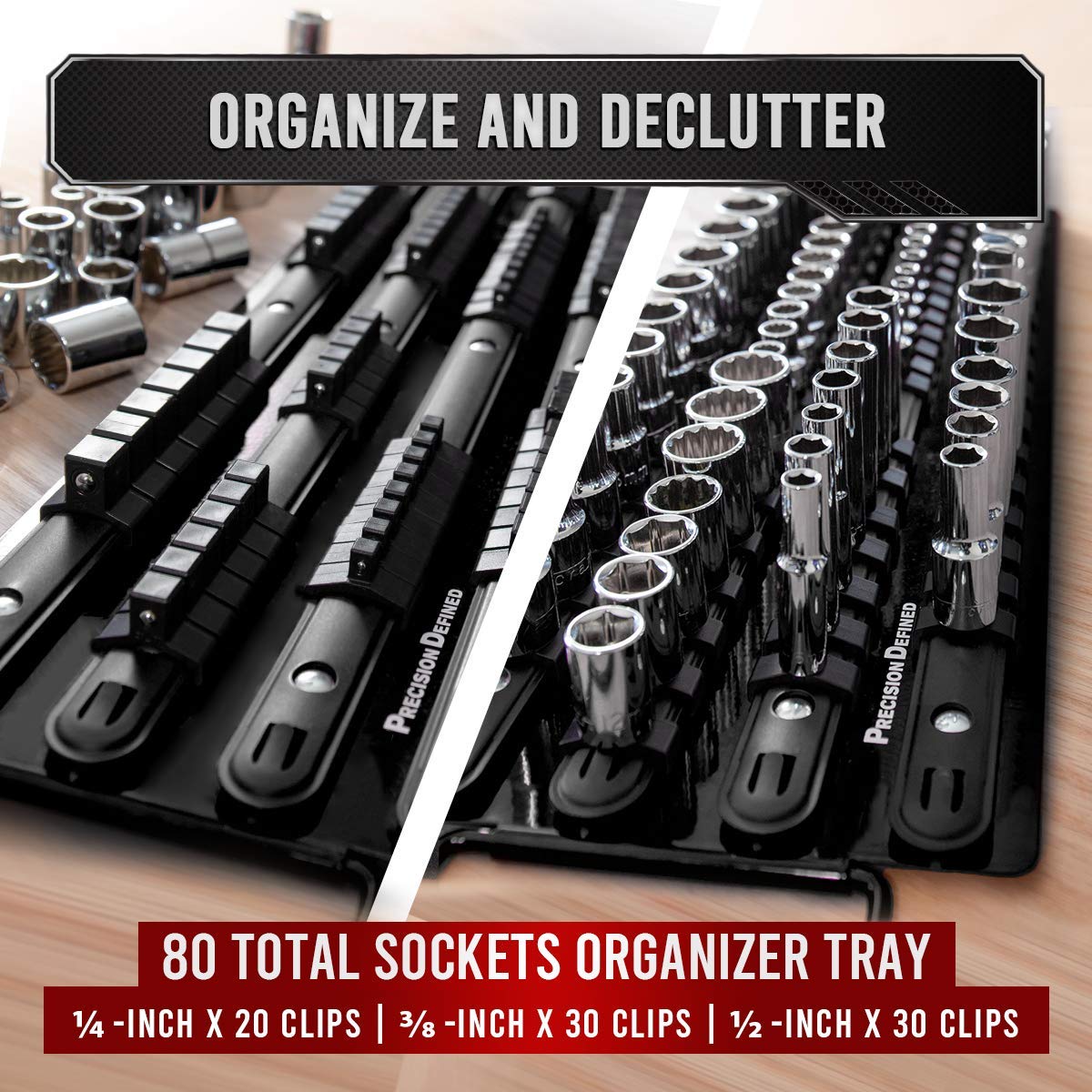 Precision Defined Portable Tool Socket Organizer Tray, 80 Sockets, 1/4-Inch X 20 Clips, 3/8-Inch X 30 Clips, 1/2-Inch X 30 Clips