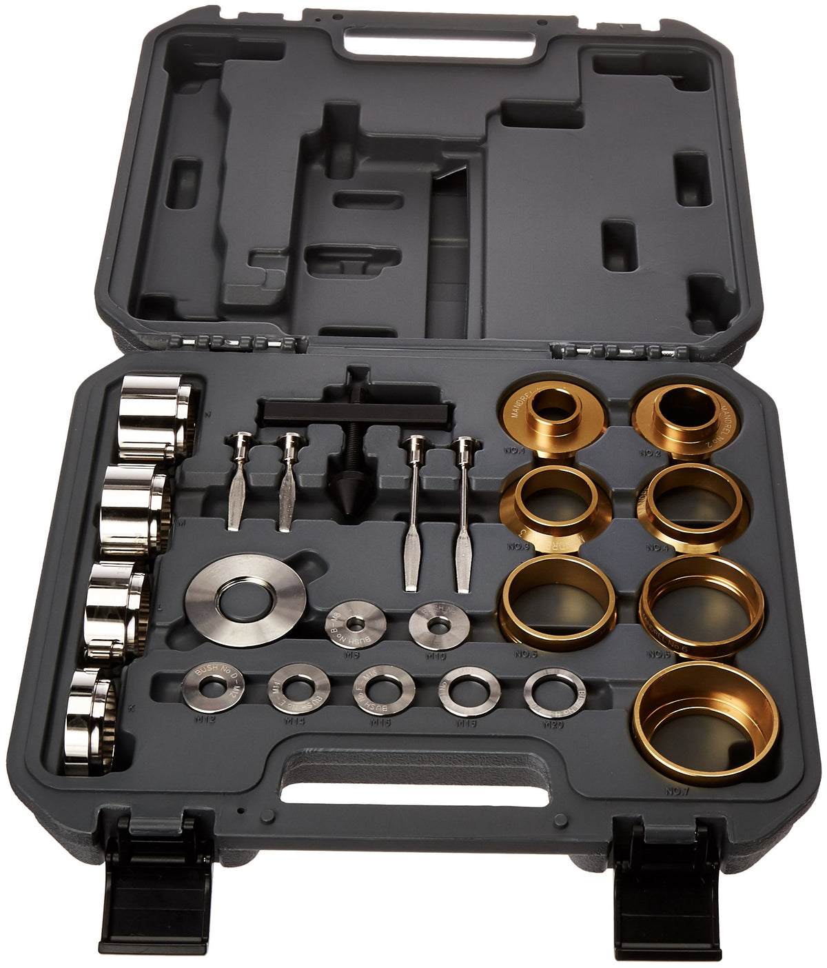 Remove and install crankshaft and camshaft seals on most all passenger cars, SUV and light commercial vehicles. Easily remove and install crankshaft and camshaft seals without damage Compact puller with unique extracting hooks engage seal for quick removal Interchangeable sleeves and mandrels allow easy installation of new seal Suits seal sizes 21.5mm - 64mm Reduces service times and ensures no reworks due to damaged seals or housings PBT USA 70960 Crankshaft and Camshaft Seal Tool Kit