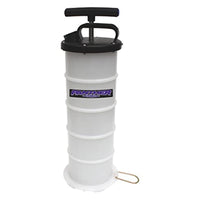 Oil Extractor 6.0L. Mid-Size Container For Smaller Jobs And Tighter Areas. The Heavy Duty Construction Makes This Extractor Perfect For Shop Use. Or The Mobile Service Professional. Safe, No-Spark Hand Operation Check Valve For Easy Release Of Displaced Air In Container.. Extra Long 48'' Hoses With Fittings Included For Almost Any Extraction Application. Newly Designed Decompression Valve To Release Negative Pressure. See-Through Container For Quick Visual Reference. Convenient Foot Board For Added Stability While In Operation. Pour Spout For No-Mess Fluid Disposal. Suitable For Engine Oil, Gear Lube, Brake Fluid, Coolant, Water Etc. Note: Not For Use With Flammable Or Corosive Products
