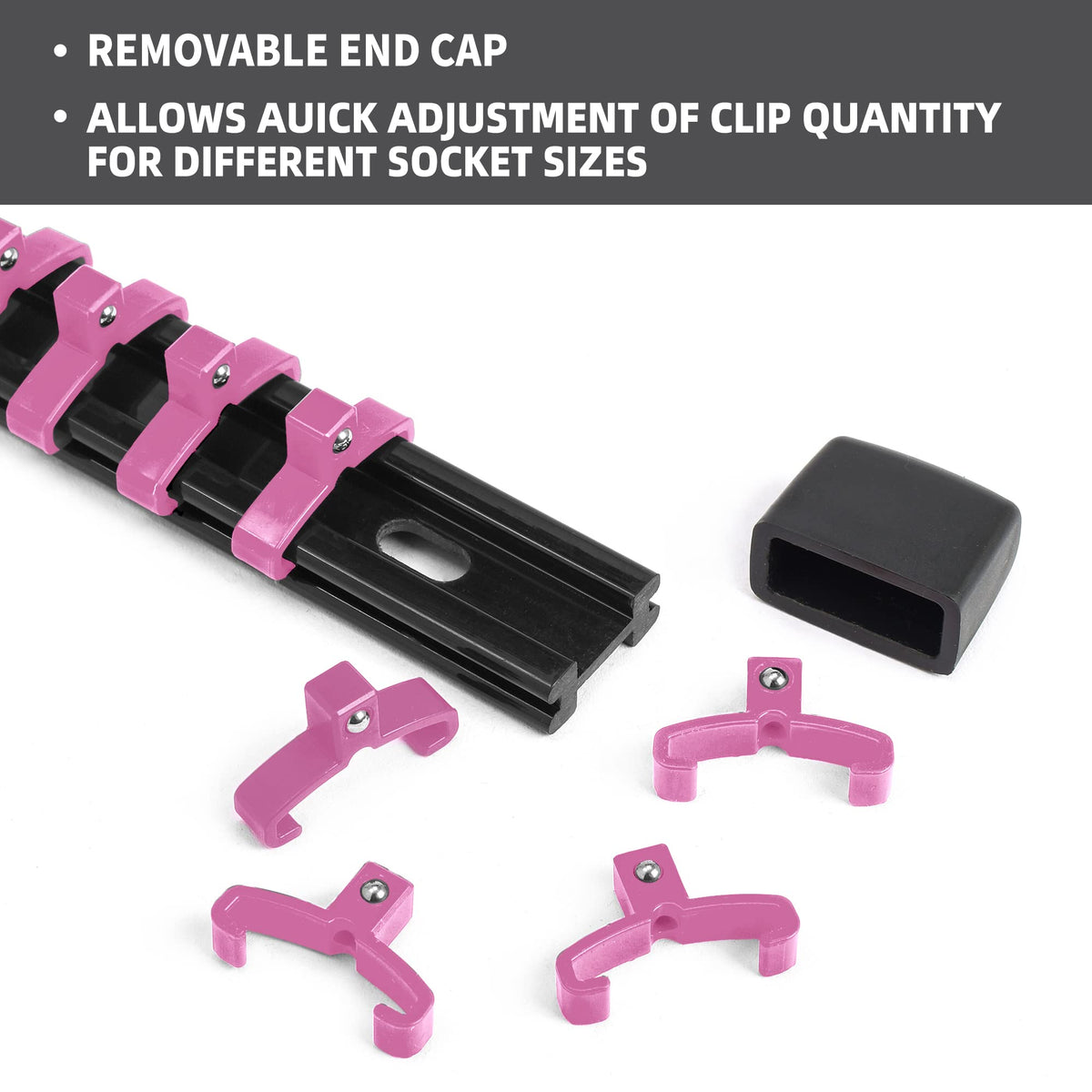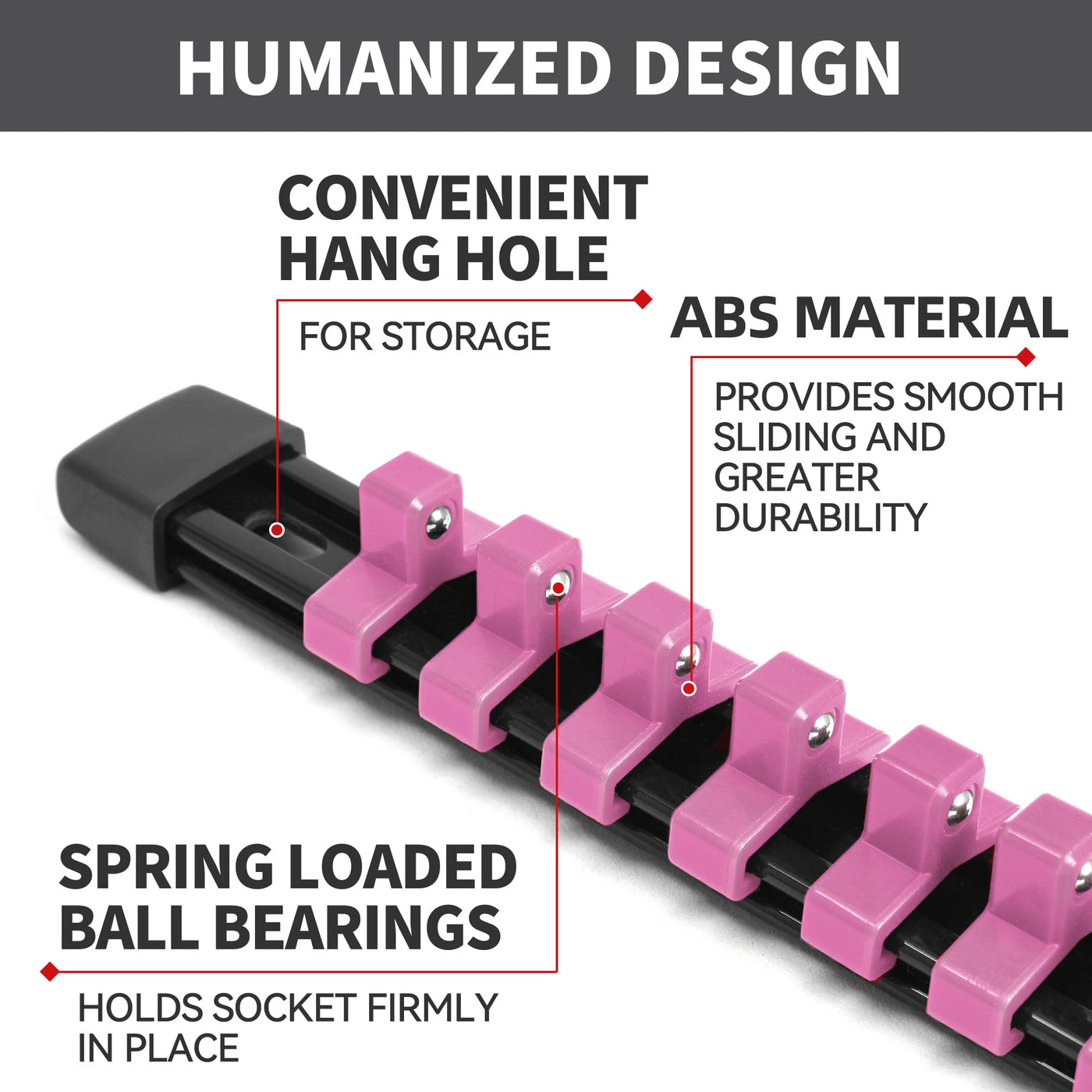 Reniteco Socket Organizer Drive Abs Tools - Pink Socket Holder, Premium Quality 12 Pieces Socket Holders Kit 1/4-Inch X 64 Clips, 3/8-Inch X 60 Clips, 1/2-Inch X 48 Clips(12Pc,Pink)