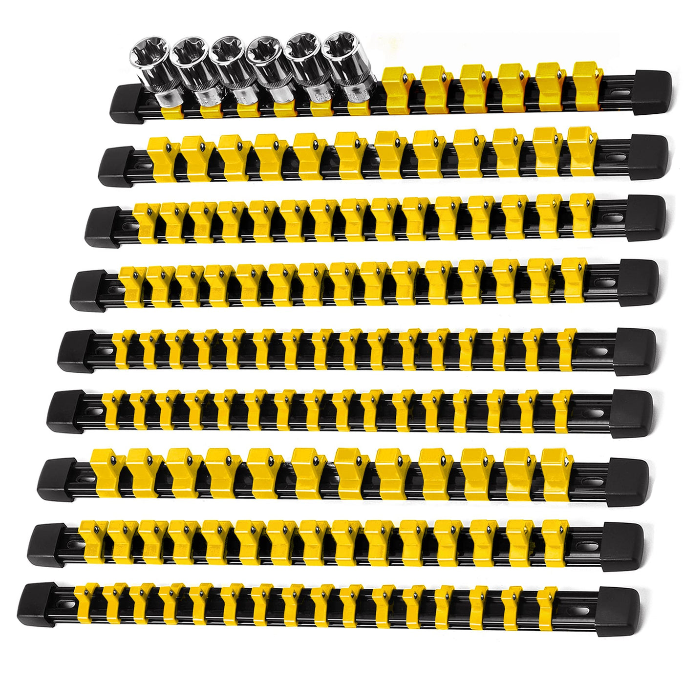 Reniteco Socket Organizer Drive Abs Tools - Yellow Socket Holder, Premium Quality 9 Pieces Socket Holders Kit 1/4-Inch X 48 Clips, 3/8-Inch X 45 Clips, 1/2-Inch X 36 Clips(9Pc,Yellow)