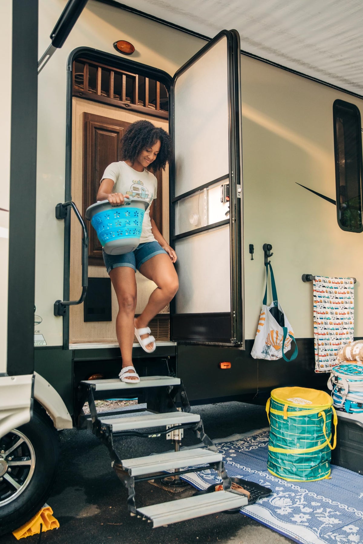 Q: What is the best way to use the RV Wheel Chock with Rope?A: To use the RV Wheel Chock with Rope effectively, simply place it securely against the trailer tire on a flat surface. The attached rope allows for easy removal once you are ready to hitch up again. Ensure that the chock is positioned correctly to prevent any movement.