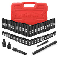 Q: What sizes are included in the SEKETMAN 3/8-Inch Drive Impact Socket Set?A: The SEKETMAN impact socket set includes 49 pieces, featuring both SAE and metric sizes. The SAE sizes range from 5/16" to 3/4", while the metric sizes range from 8mm to 22mm, with both deep and shallow sockets available.